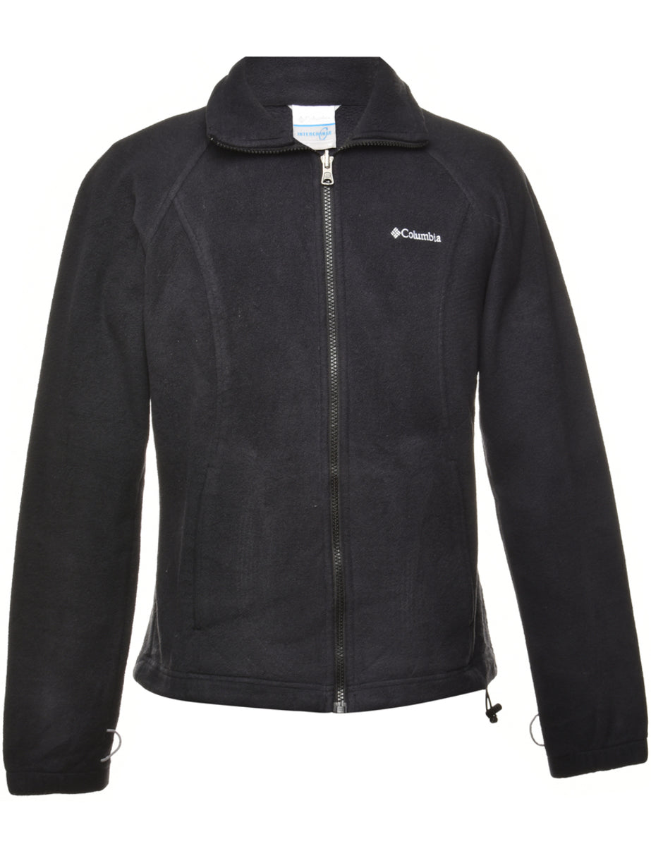 Columbia fleece sweatshirt in black with two pockets and raglan sleeves.