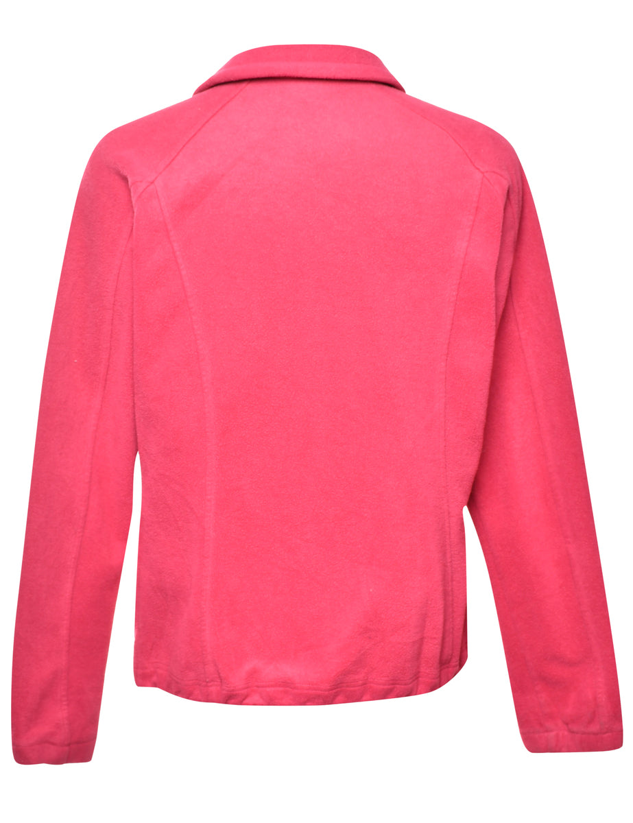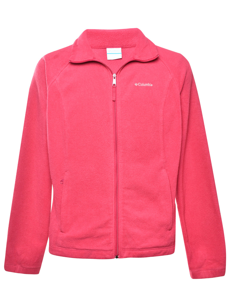 Fleece sweatshirt in pink with zippered pockets and raglan sleeves. From the brand Columbia. The size label mentions XL but based on the actual measurements we consider it a size M.