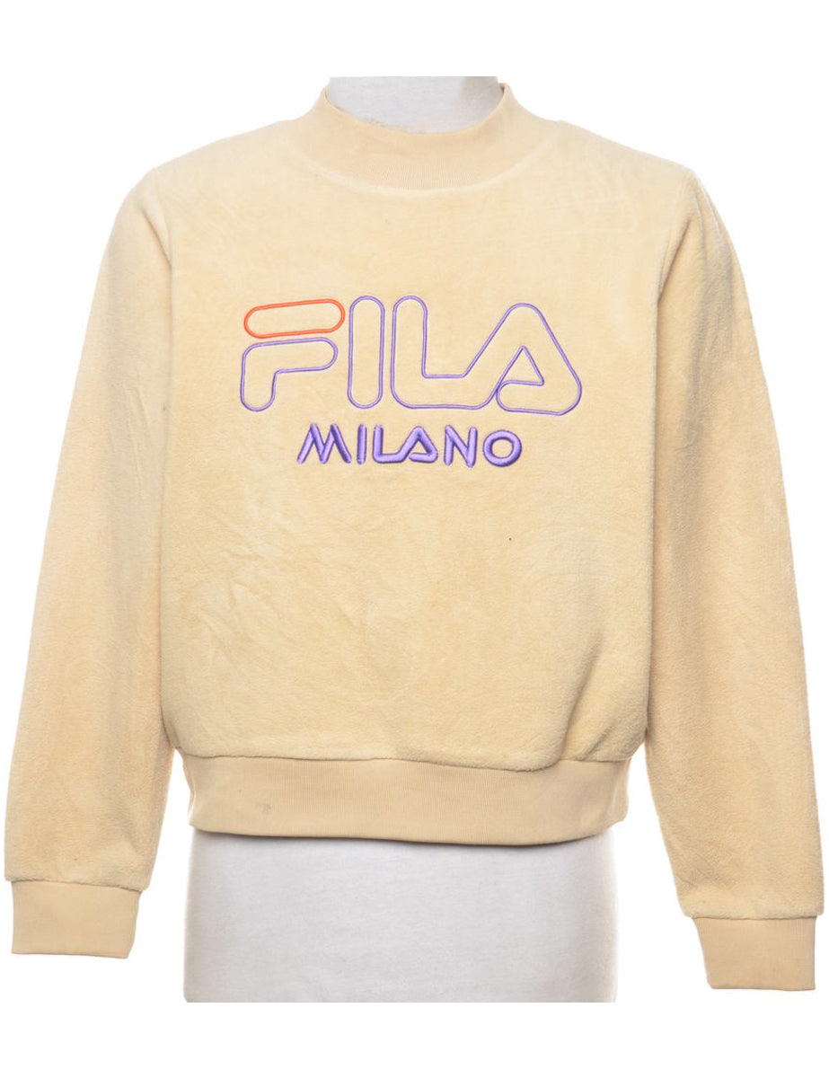 Cropped fleece sweatshirt in beige with a high neck and embroidery. From the brand Fila.