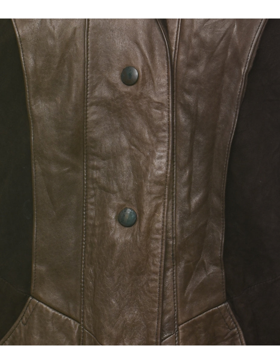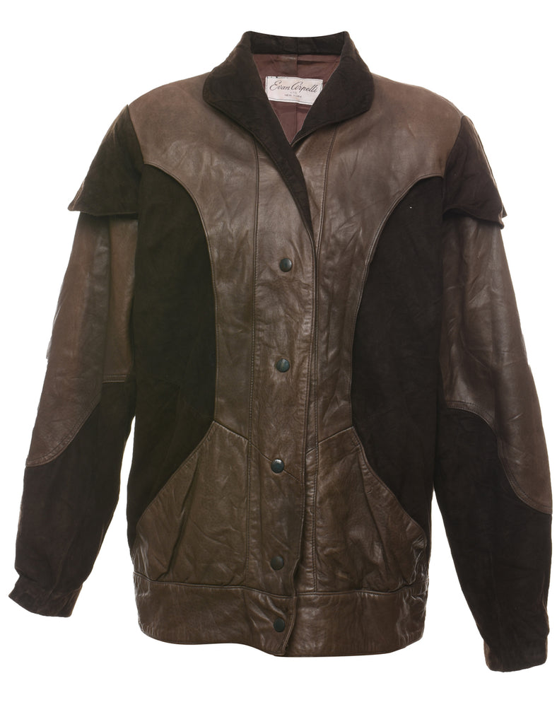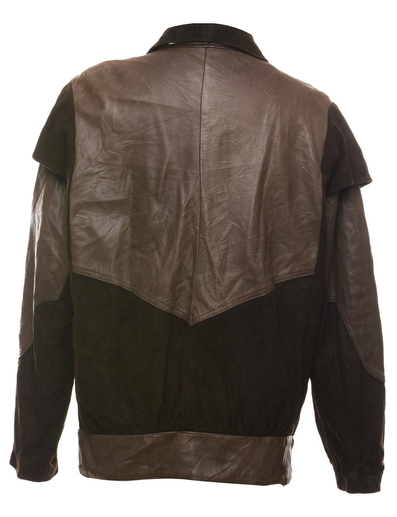 Dark brown suede & leather jacket complete with full lining and multiple pockets.