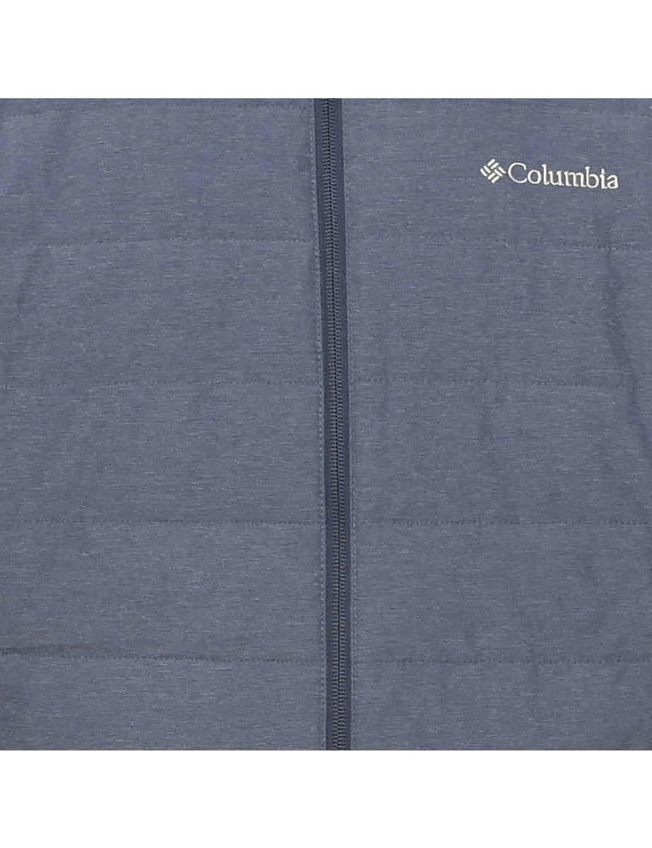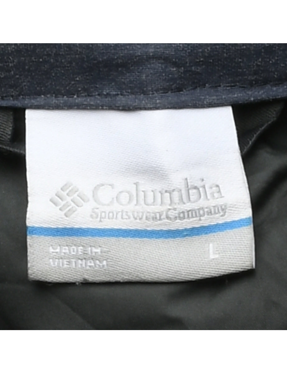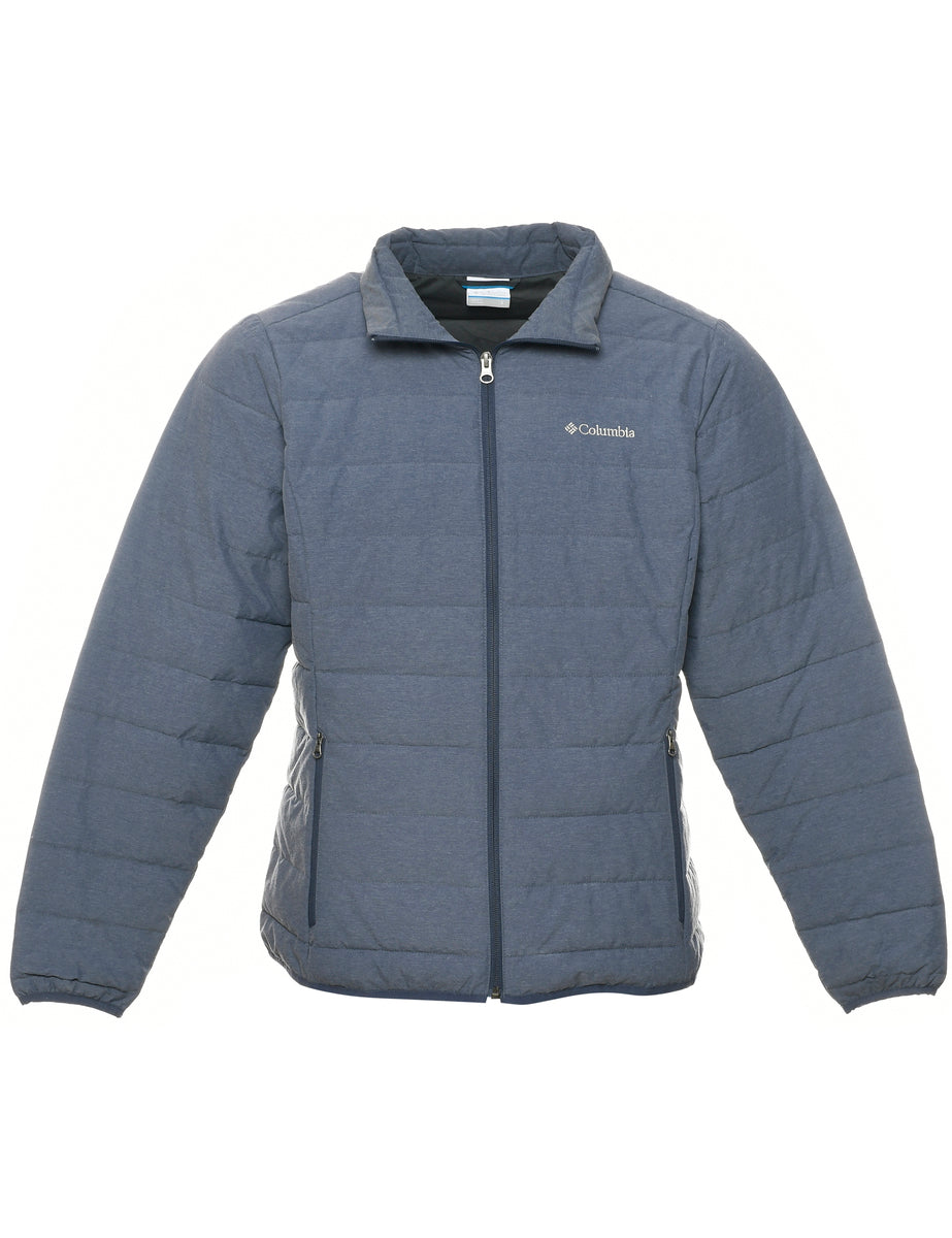Columbia zip front puffer jacket in grey with multiple pockets.