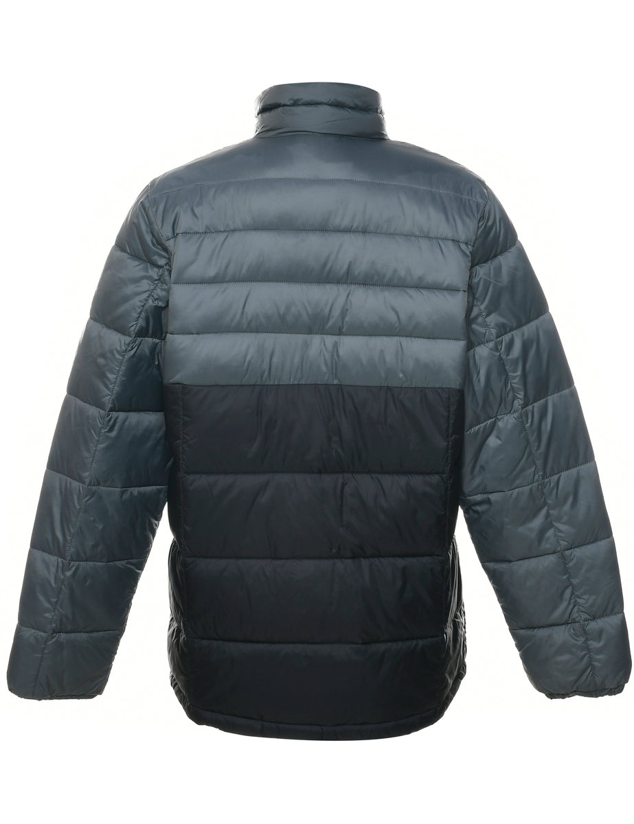 Columbia two tone puffer jacket in dark grey & black with multiple pockets.