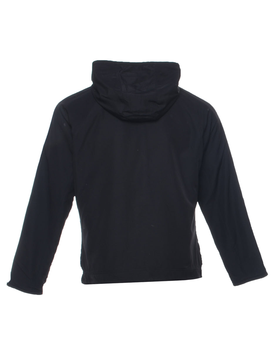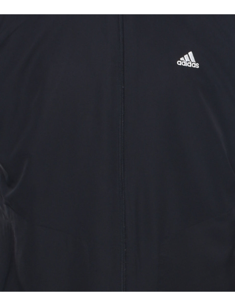Adidas hooded jacket in black with multiple pockets and raglan sleeves.