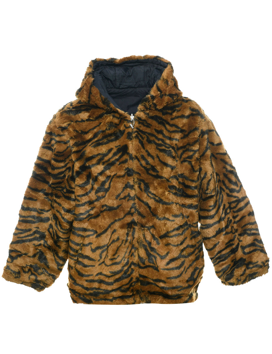 Animal print faux fur jacket. Comes in brown with multiple pockets.