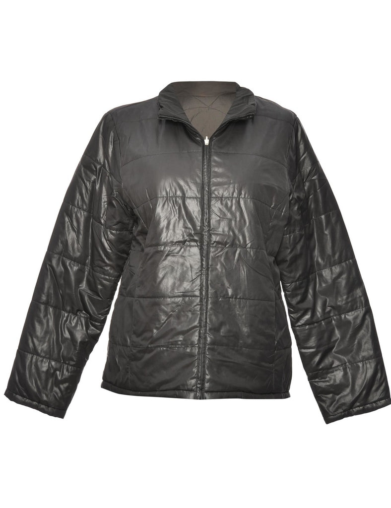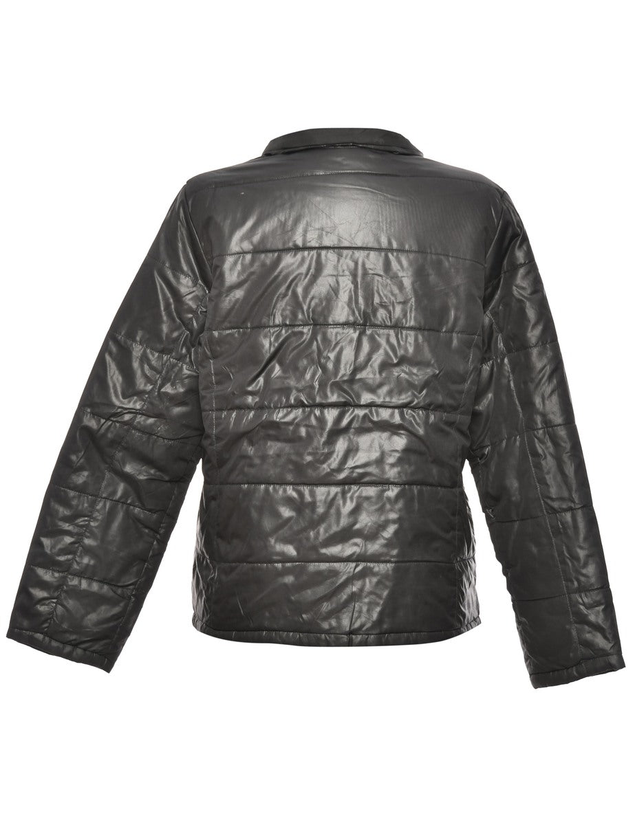 Vintage Black Classic Zip-Front Puffer Jacket - M