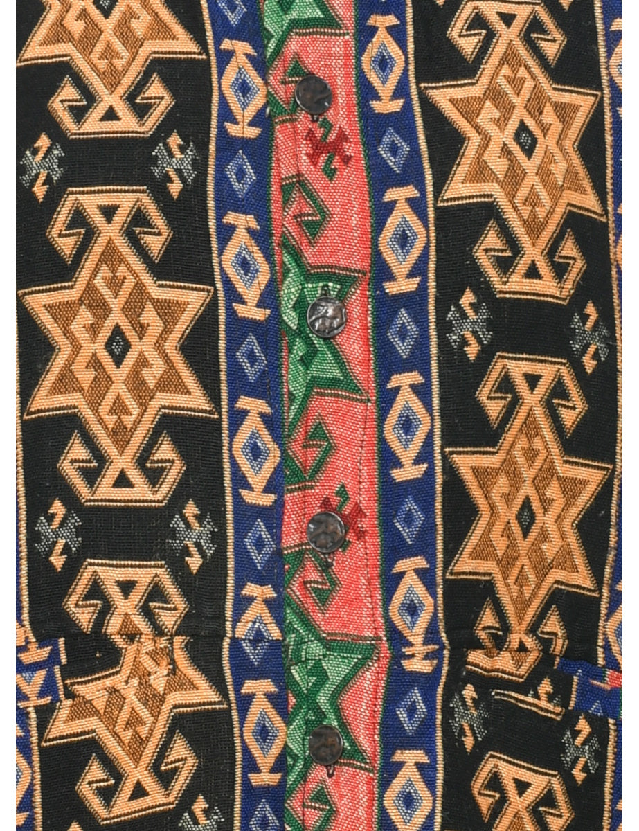 Button front tapestry jacket in multi-colour with multiple pockets.