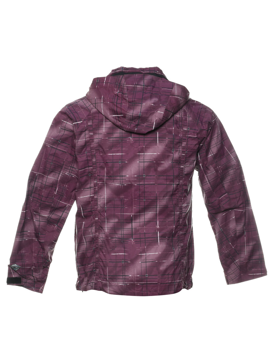 Columbia hooded nylon jacket in plum with multiple pockets..
