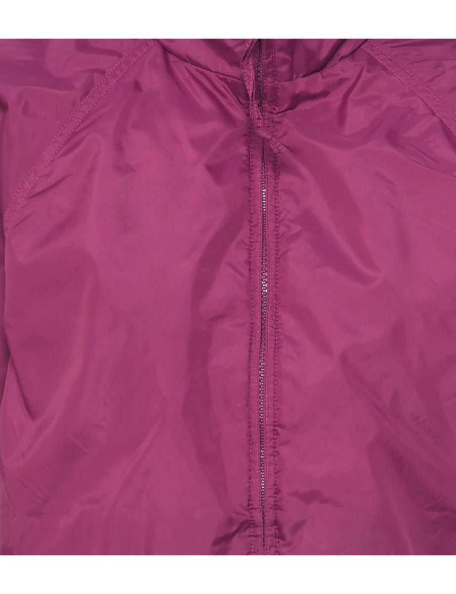 Hooded jacket. Eddie Bauer in hot pink with multiple pockets. The size label mentions S but based on the actual measurements we consider it a size M.