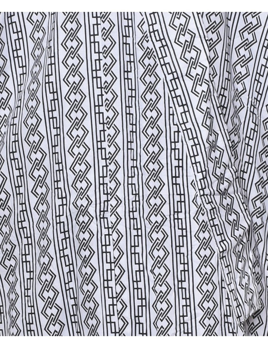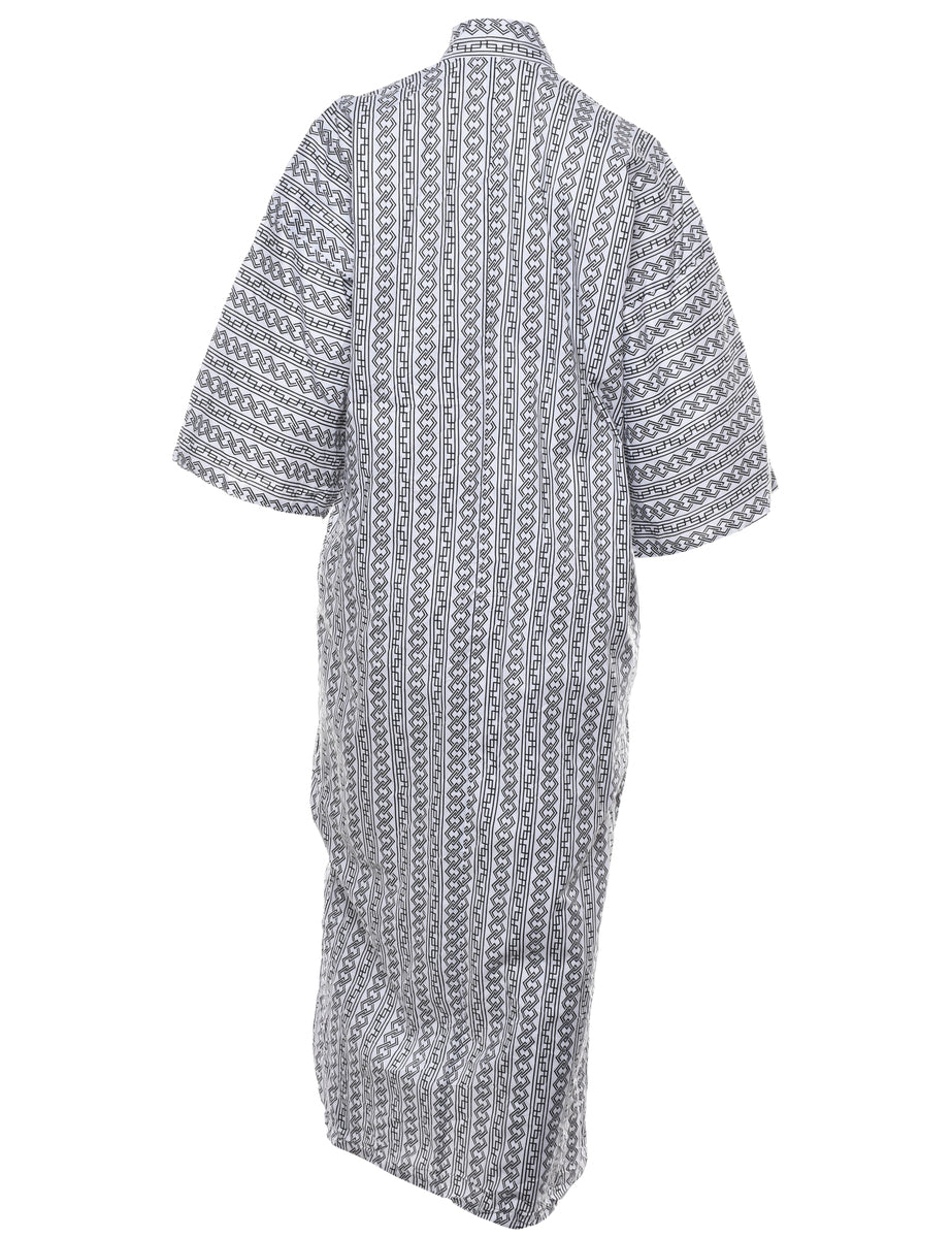Unique full length kimono. Comes in white with geometric print & full lining.