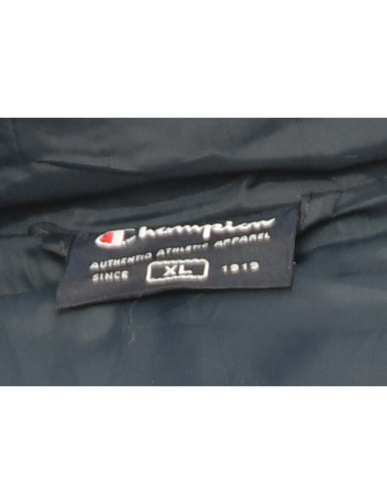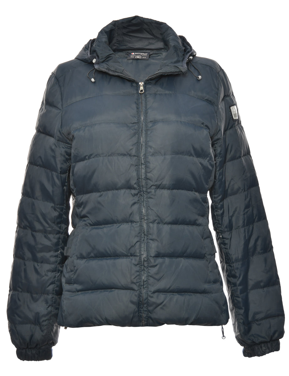 Zip-front navy classic Champion puffer jacket complete with multiple pockets.