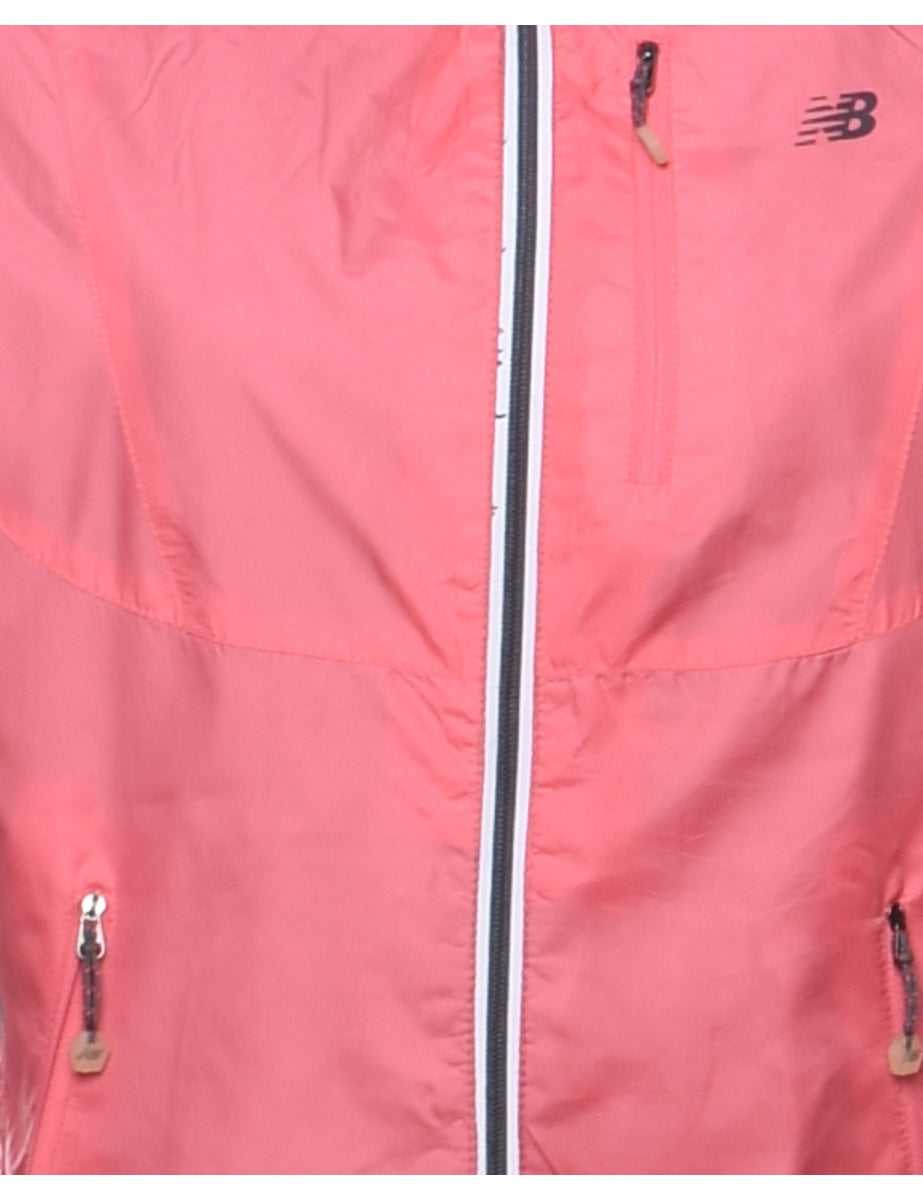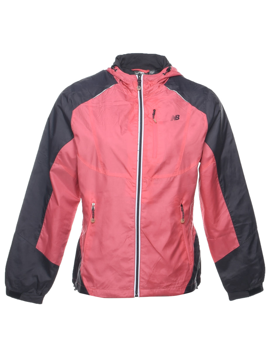 New Balance hooded jacket in salmon pink with multiple pockets.