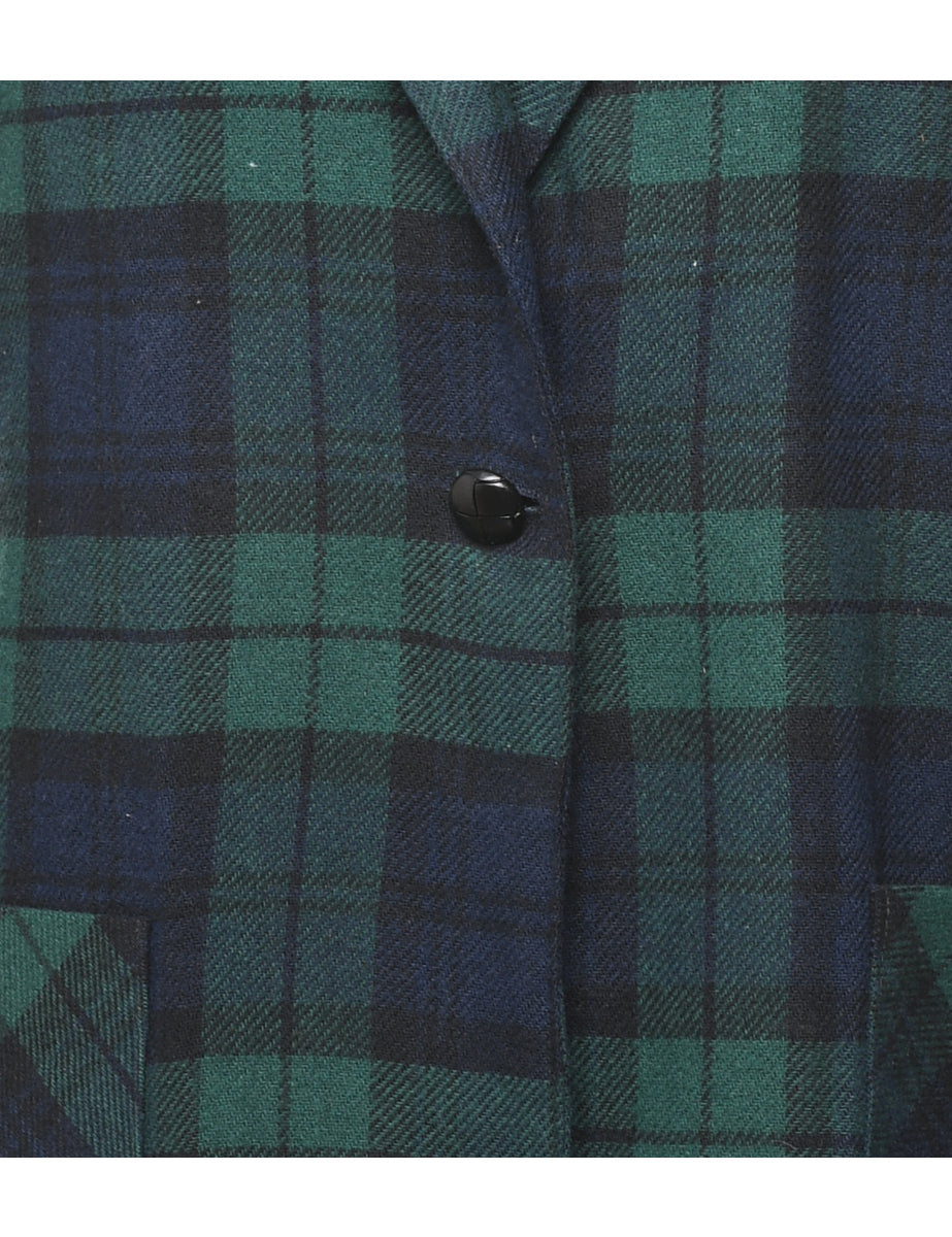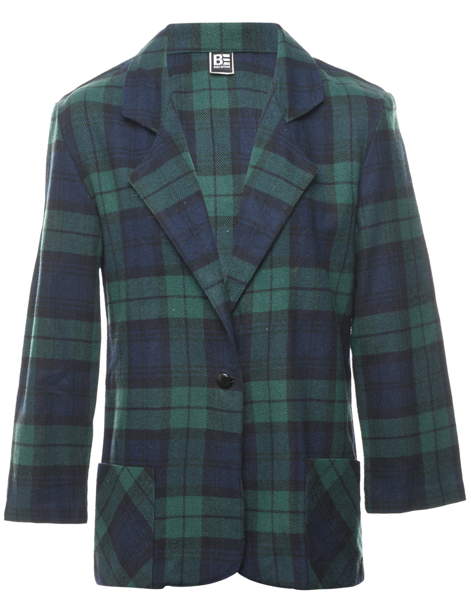 Tartan blazer in dark green & navy with multiple pockets and removable shoulder pads.