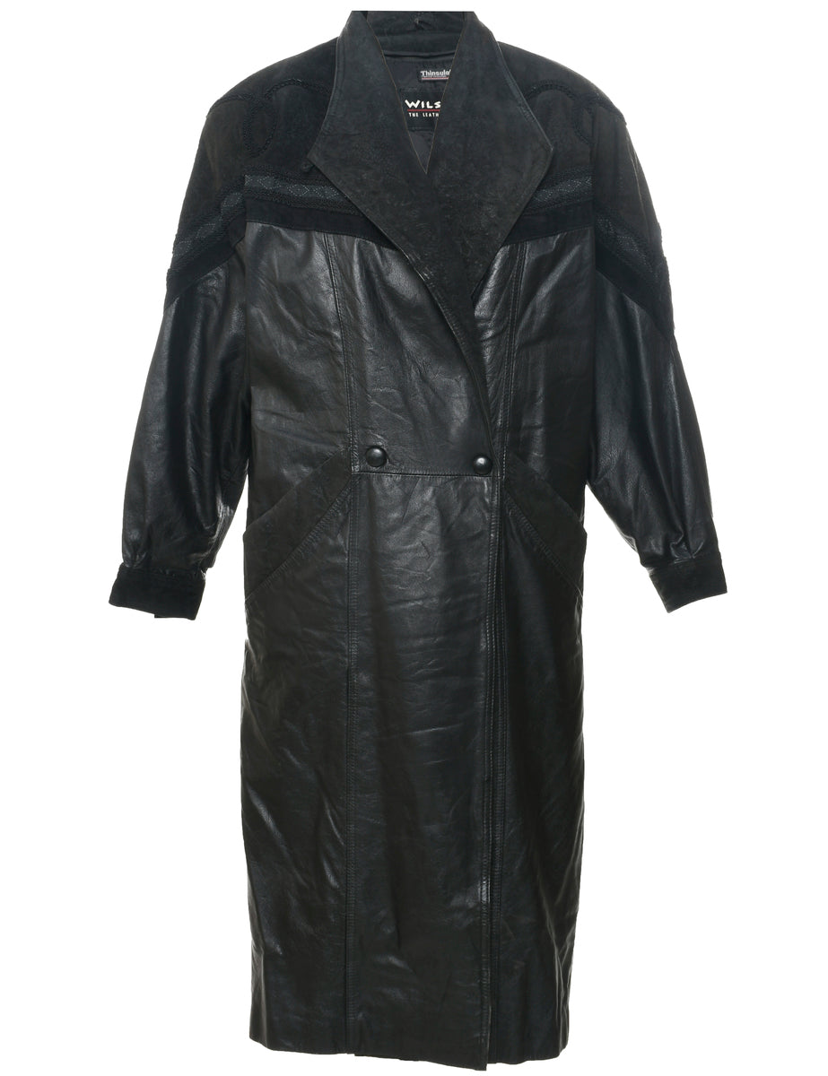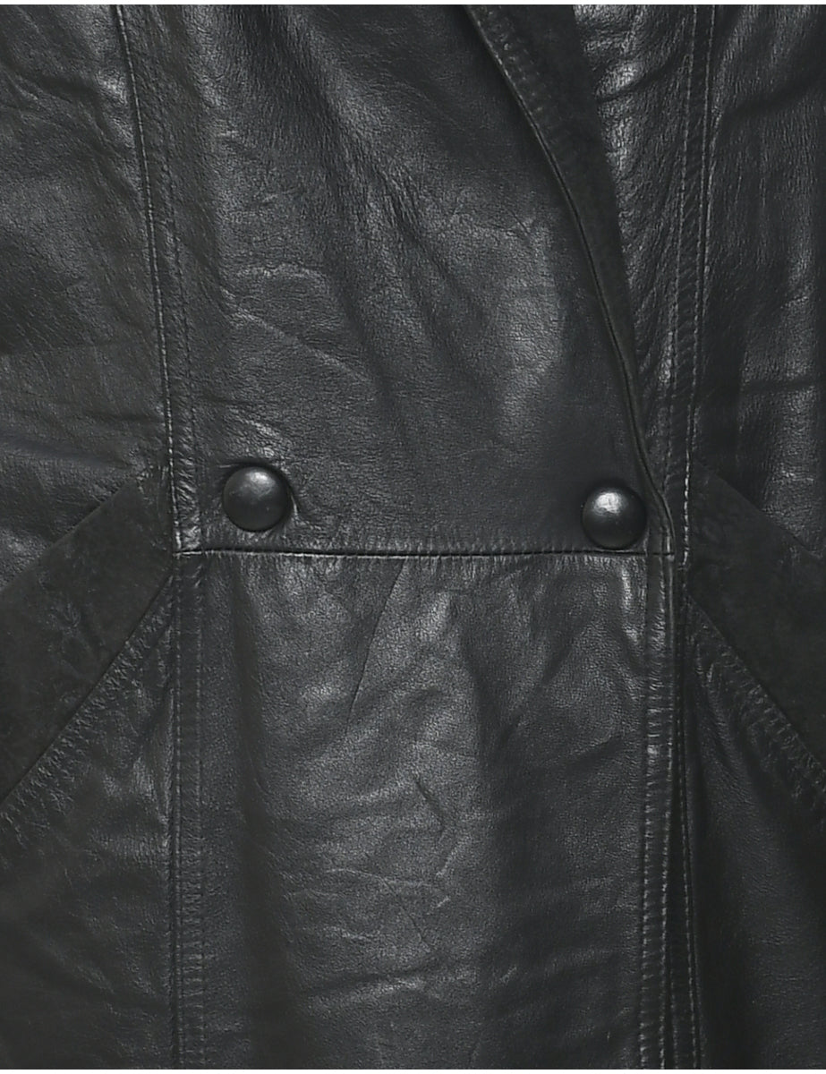 Wilson double breasted leather jacket in black with multiple pockets and shoulder pads.