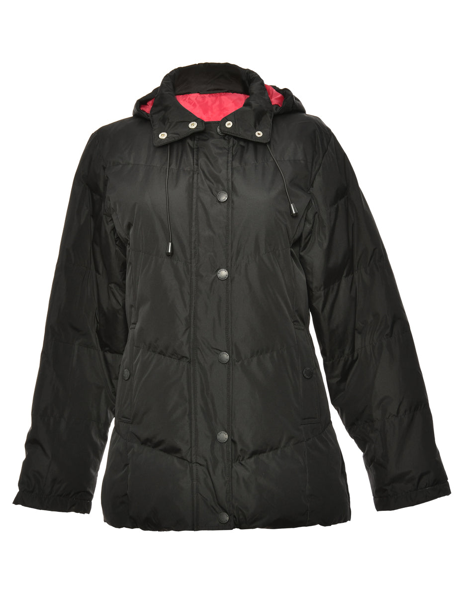Vintage Zip-Front Black Classic Puffer Jacket - M