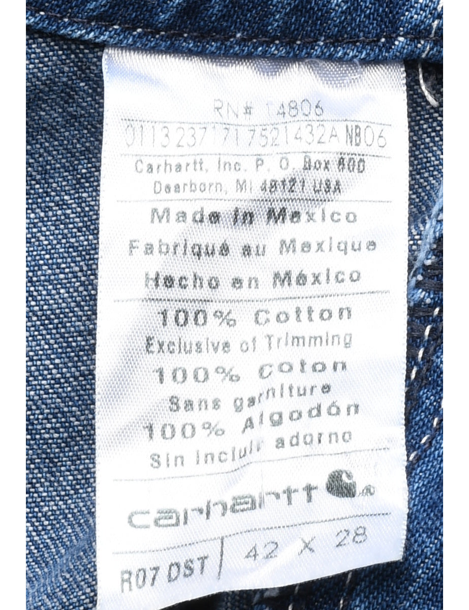 Carhartt workwear dungarees. Comes in medium wash with adjustable strap and multiple pockets.