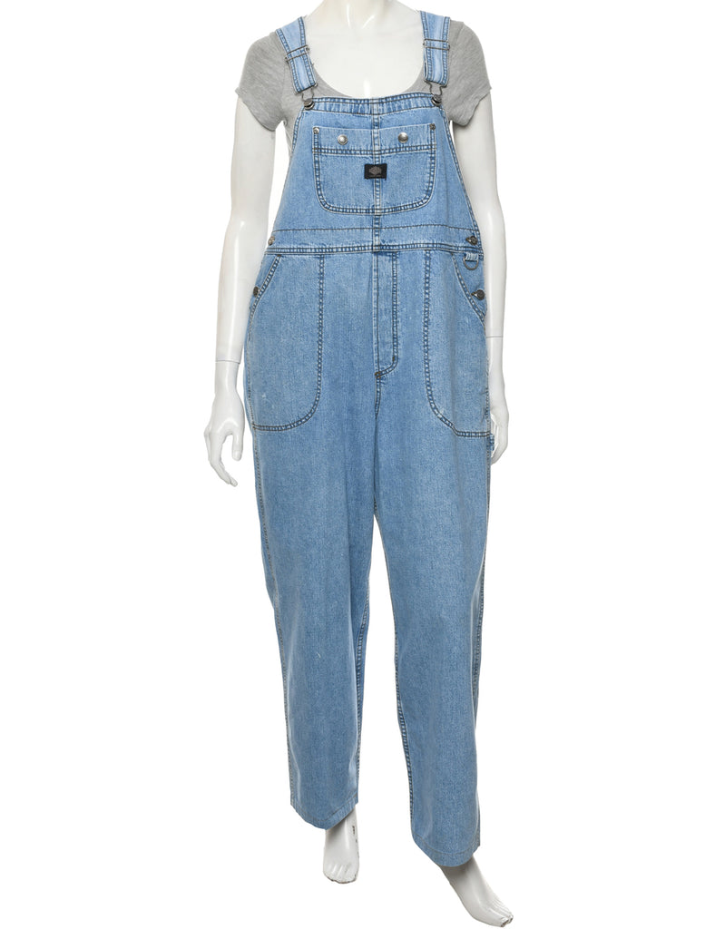 Tapered dungarees comes in light wash with adjustable strap and multiple pockets.