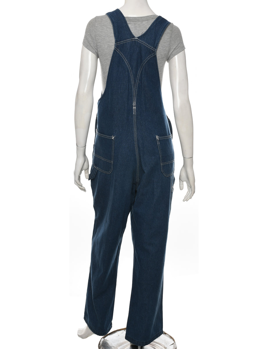 Straight leg dungarees comes in indigo with adjustable strap and pockets.