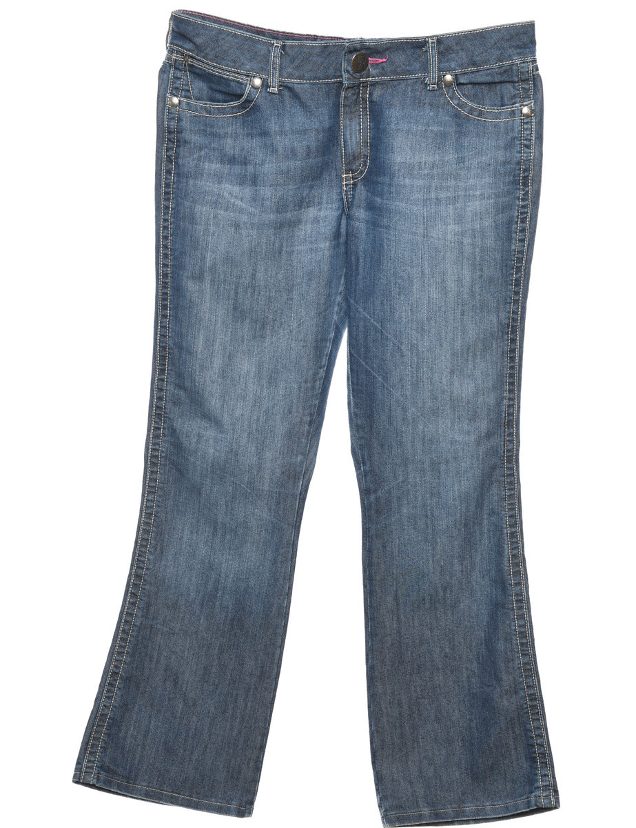 Wrangler flared jeans in stone wash with multiple pockets.