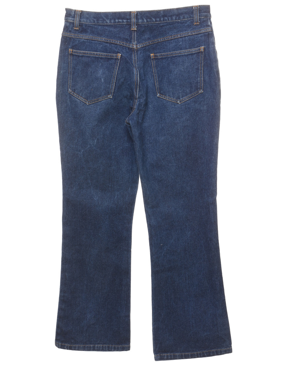 High waist bootcut jeans. Comes in indigo with multiple pockets and decorative trim.