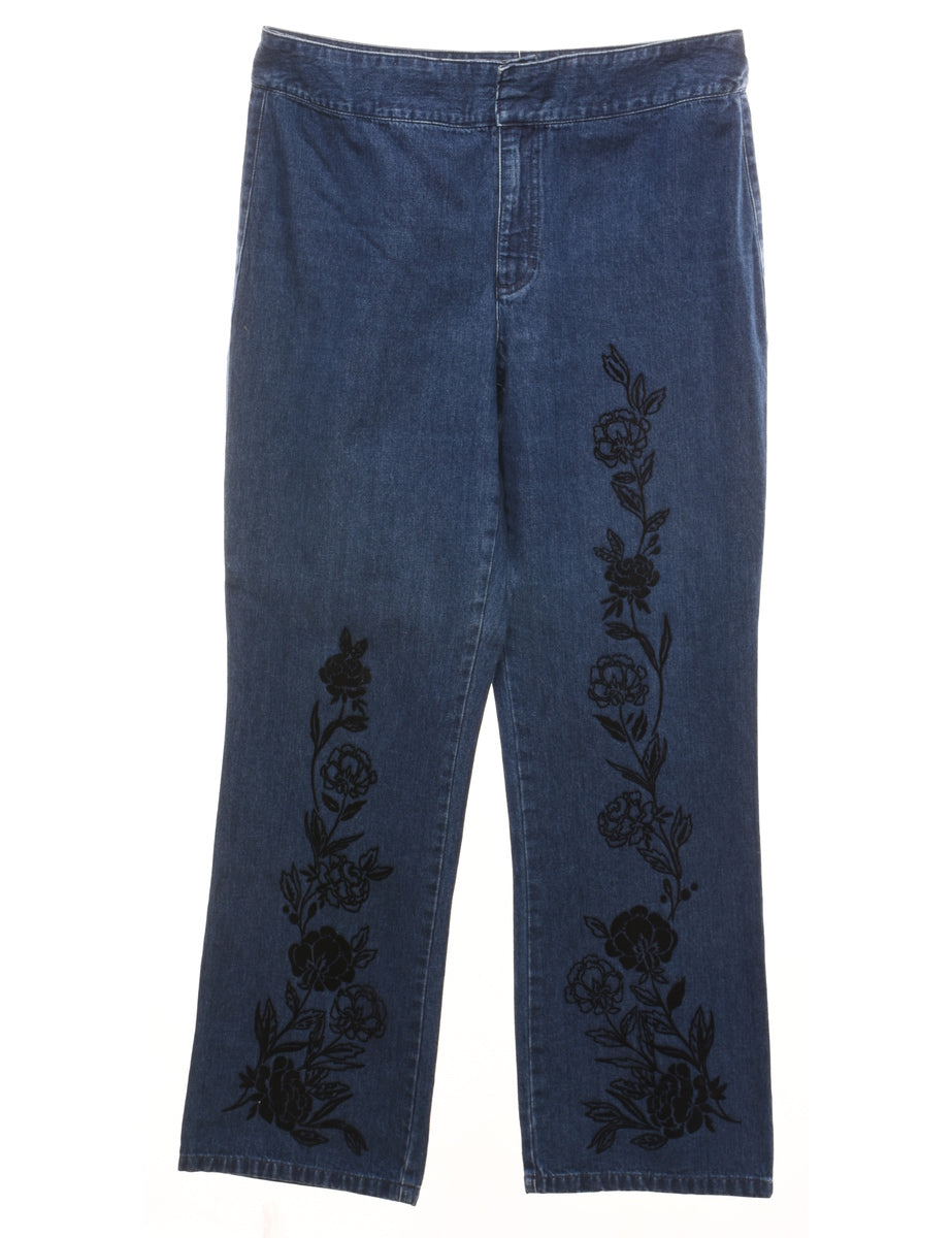 Vintage Liz Claiborne Black & Dark Wash Floral Jeans - W34 L31