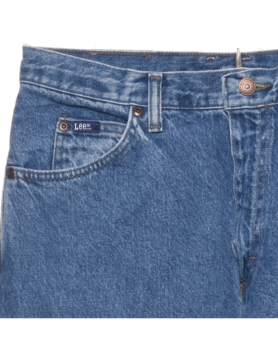 Tapered lee jeans comes in medium wash with multiple pockets.