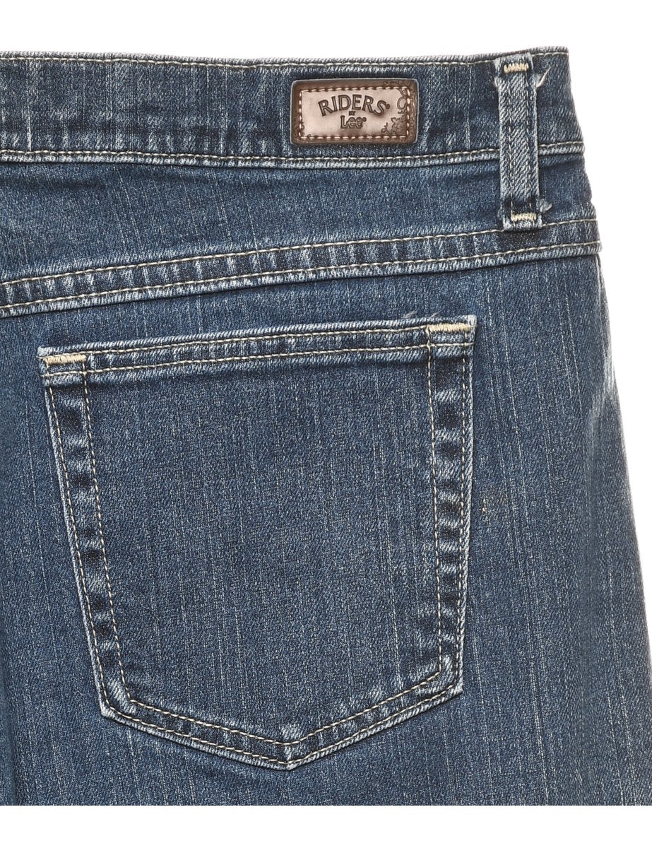 Tapered lee jeans comes in medium wash with multiple pockets.