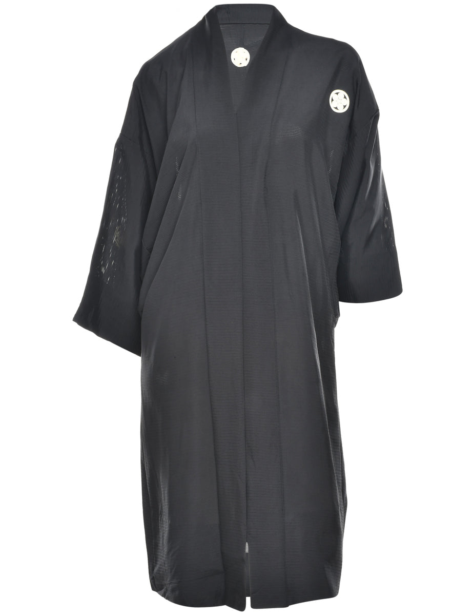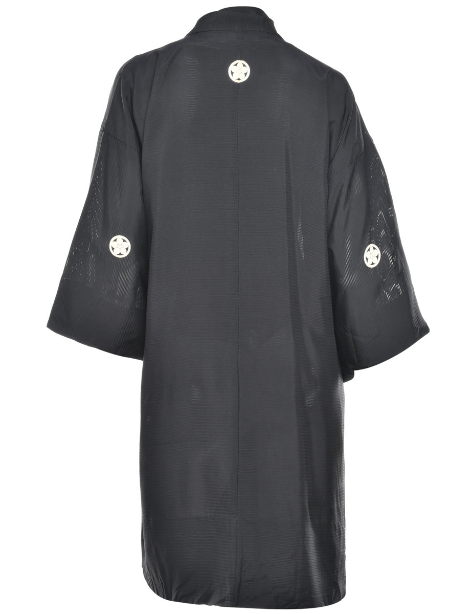 Vintage Black Midi Length Kimono - L