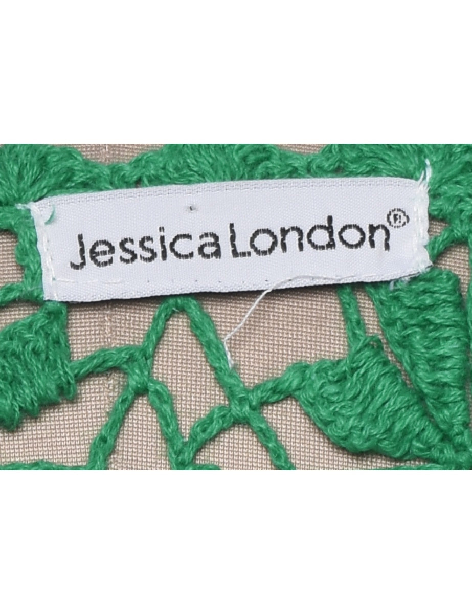 Button through cardigan with crochet. Comes in green with a scalloped hem.