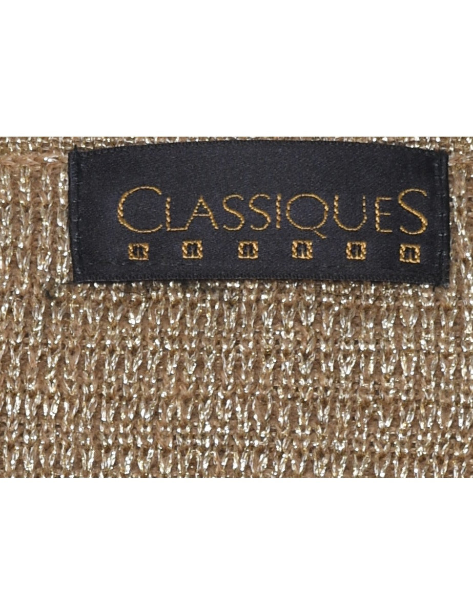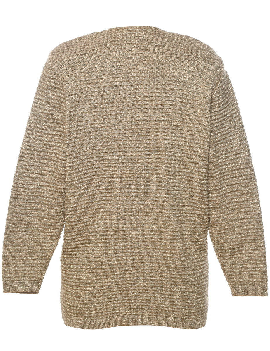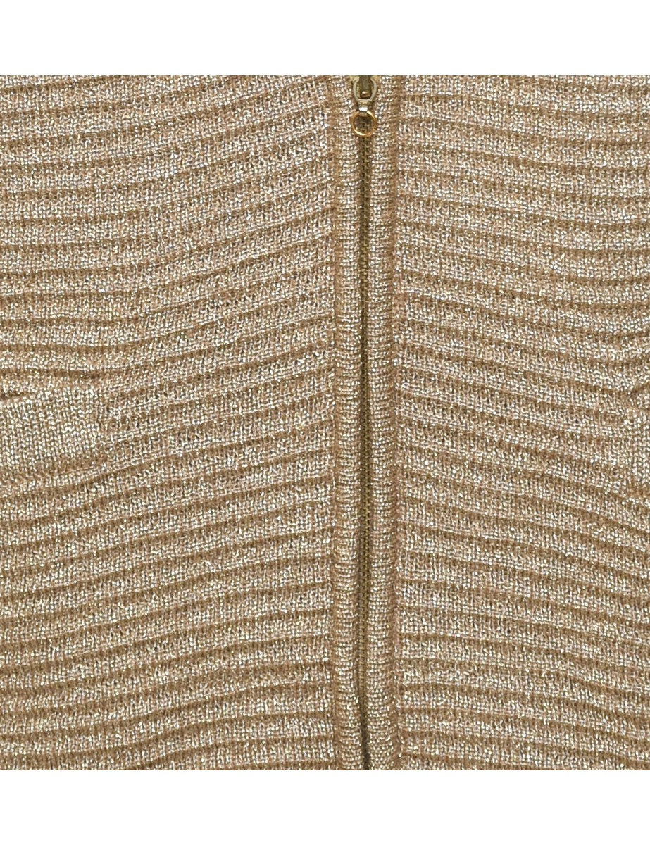 Lurex thread pattern cardigan comes in pale yellow with a v-neck and removable shoulder pads.