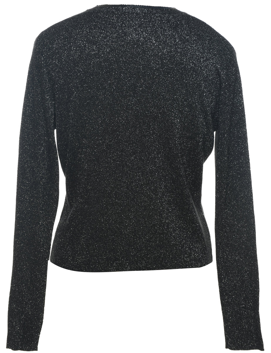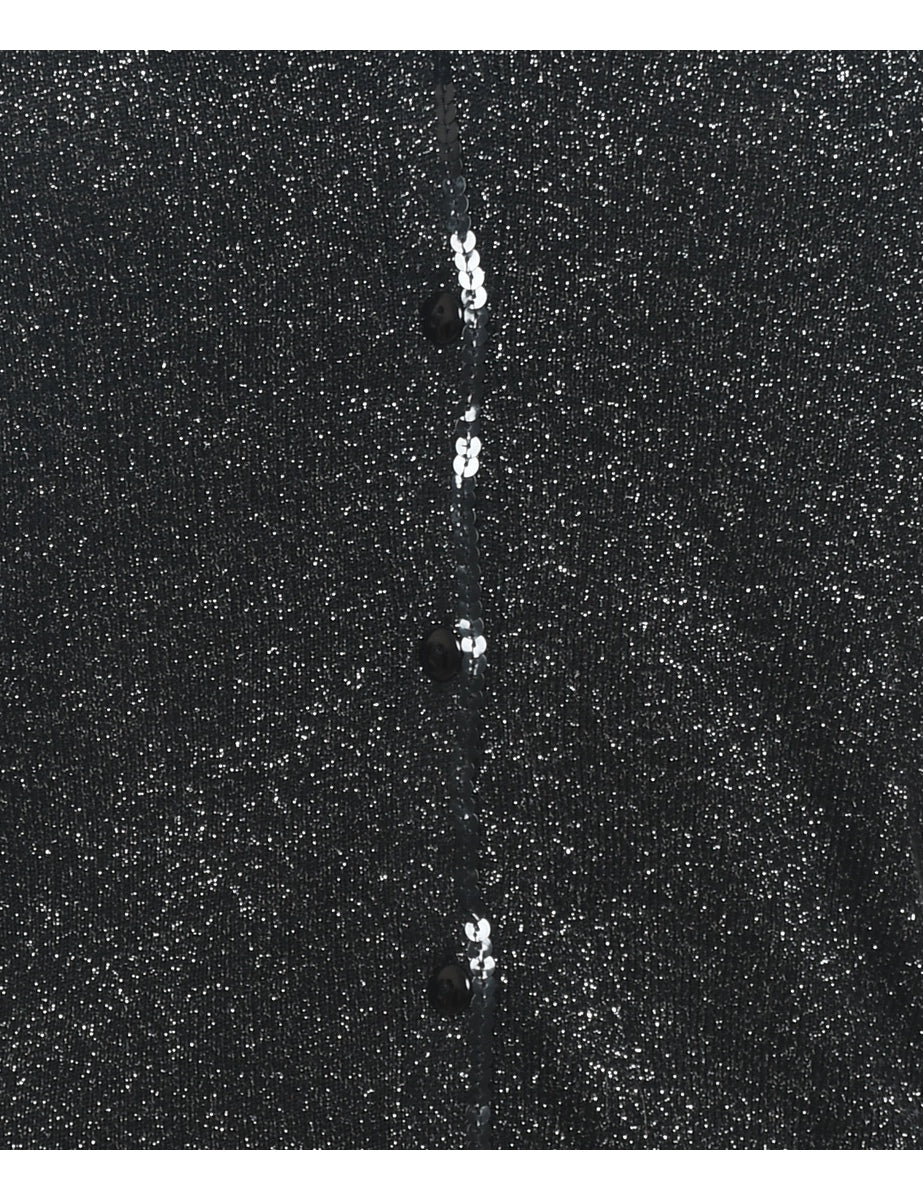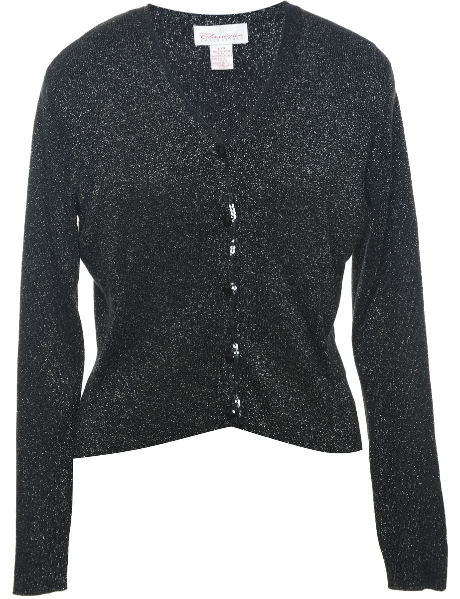 Lurex thread pattern black cardigan with a v-neck and sequins.
