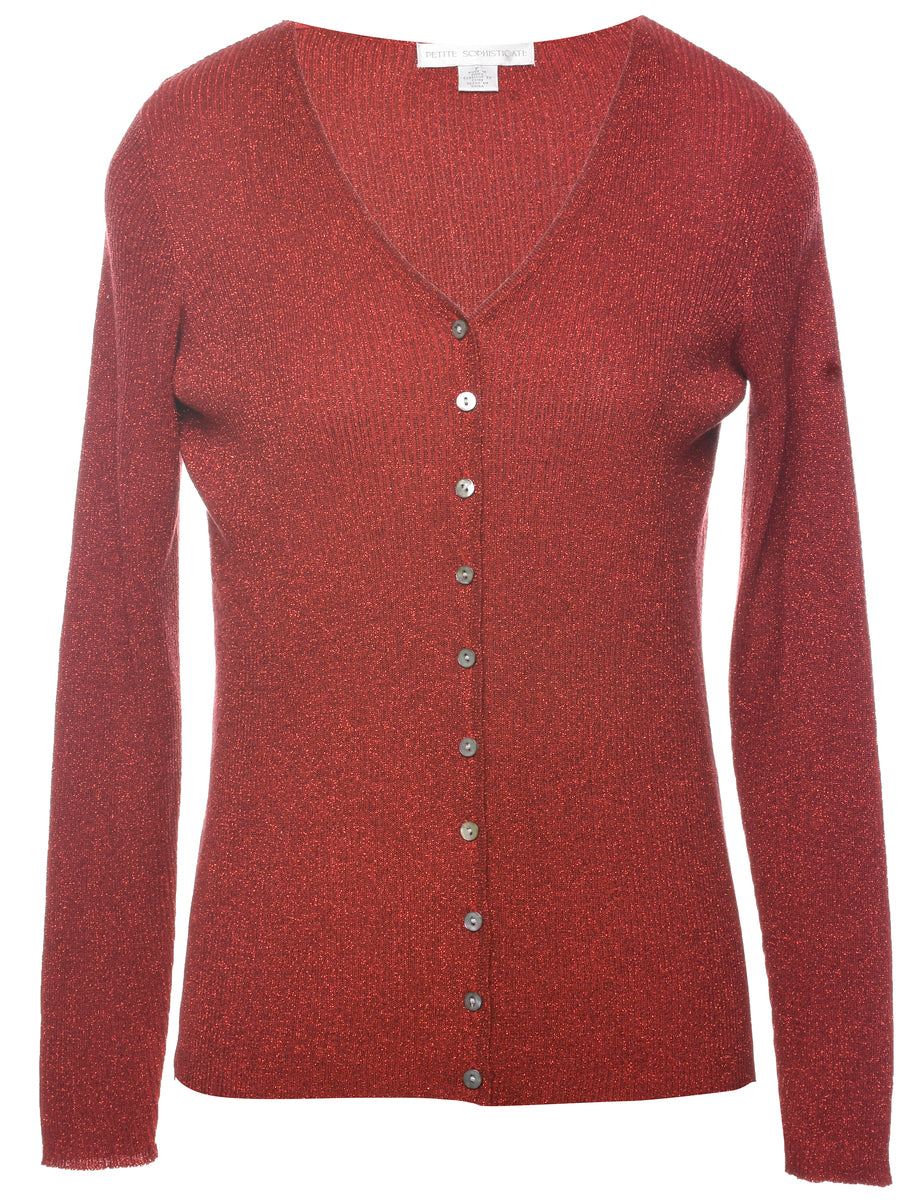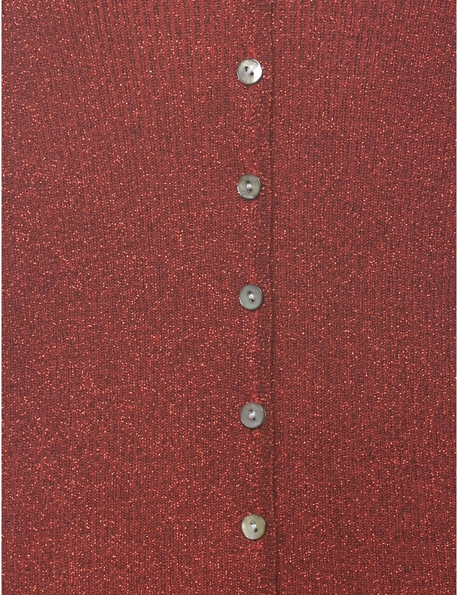 Lurex thread pattern cardigan comes in maroon with a v-neck.