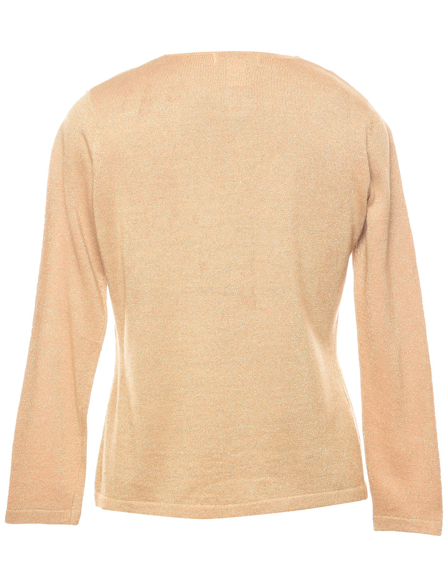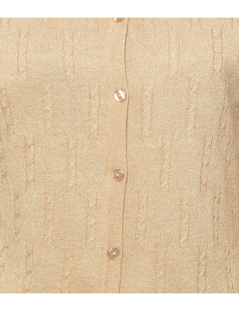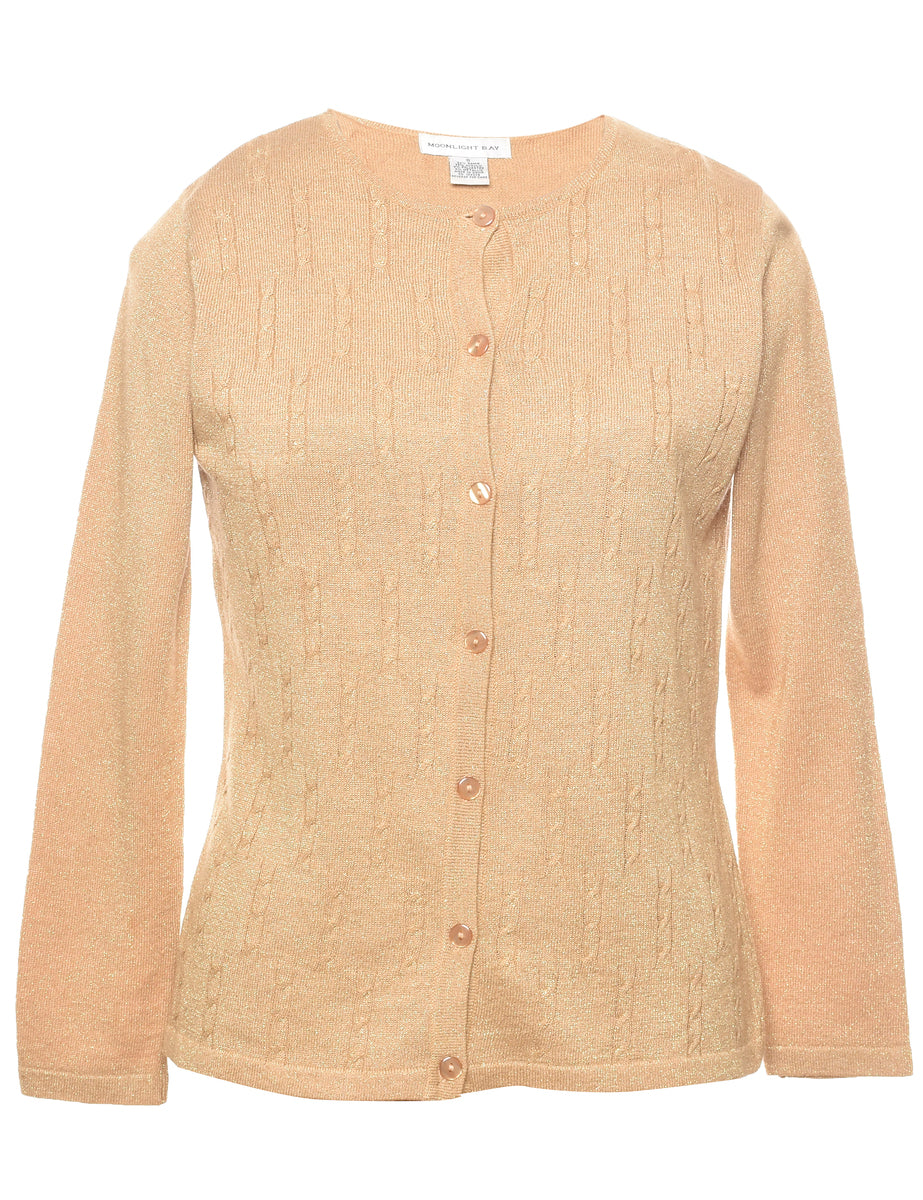 Lurex thread pattern gold cardigan with a round neck.