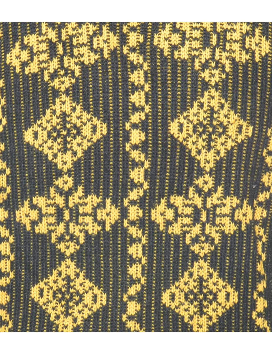 Patterned jumper in black with a crew neck.