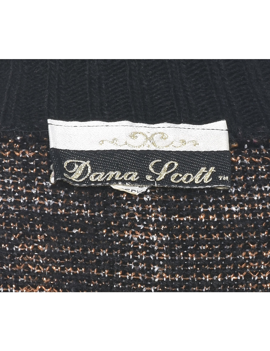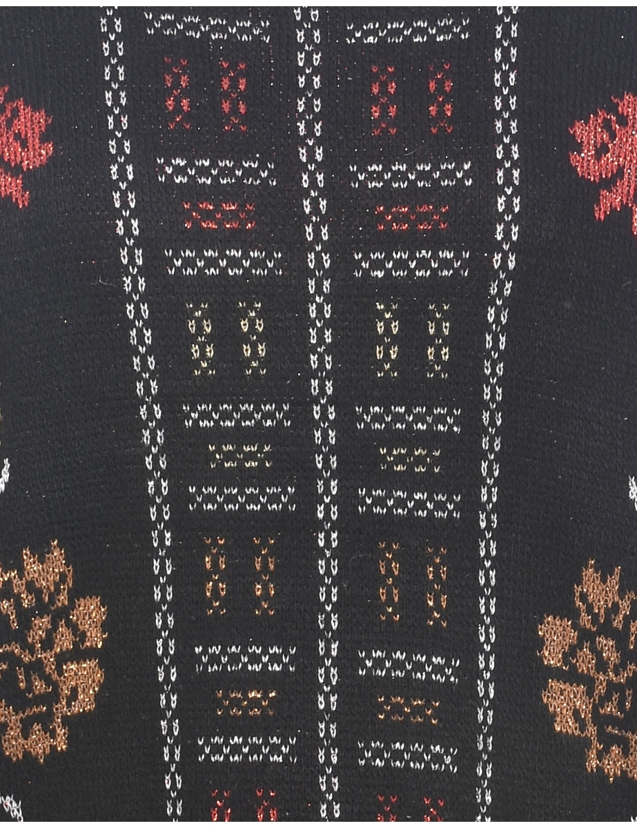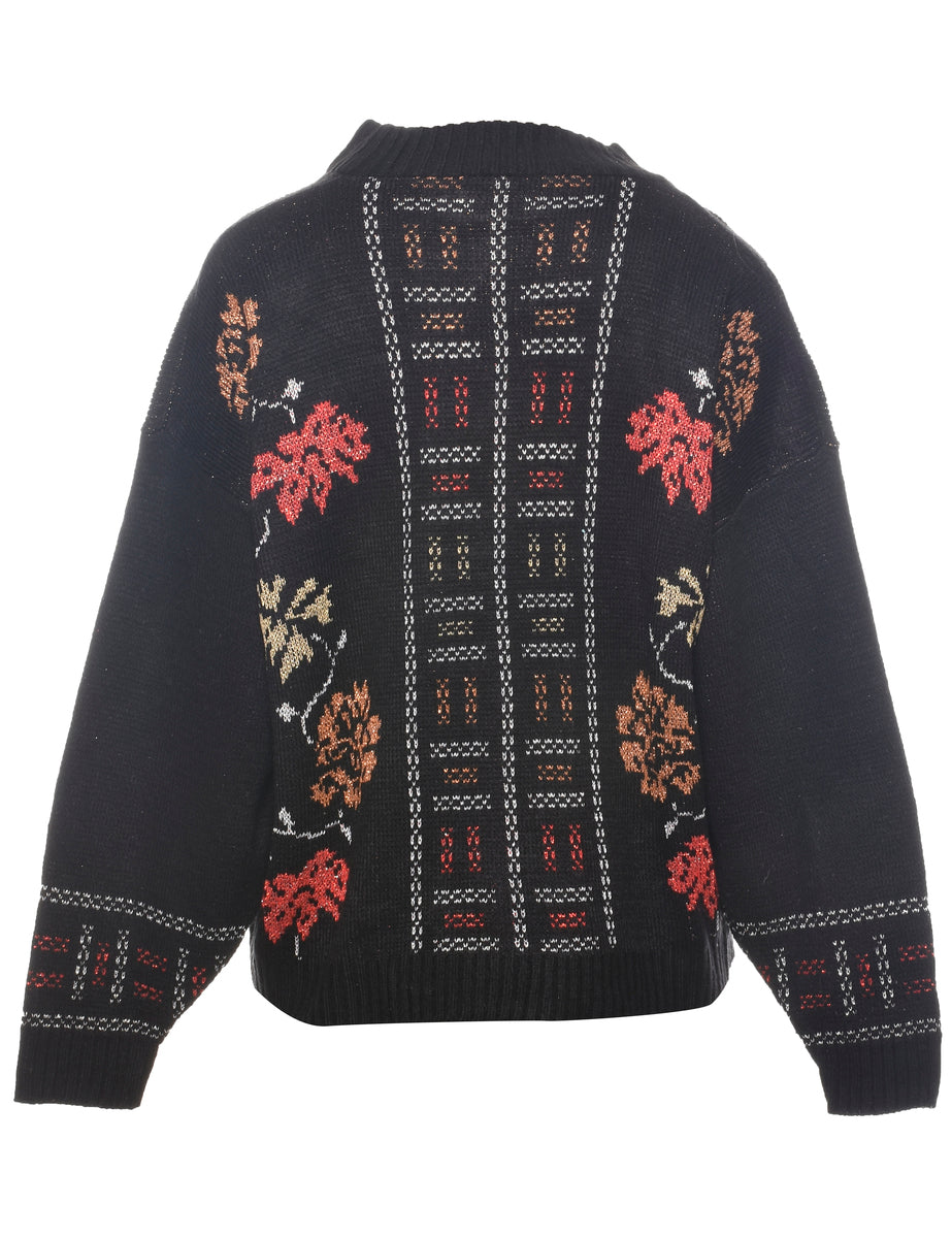Floral knit jumper with lurex thread pattern. Comes in black with a crew neck and a drop shoulder.