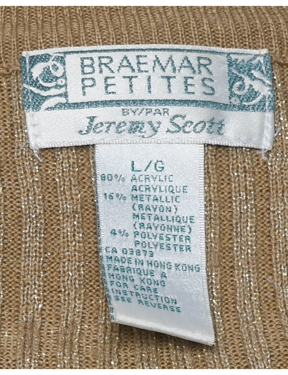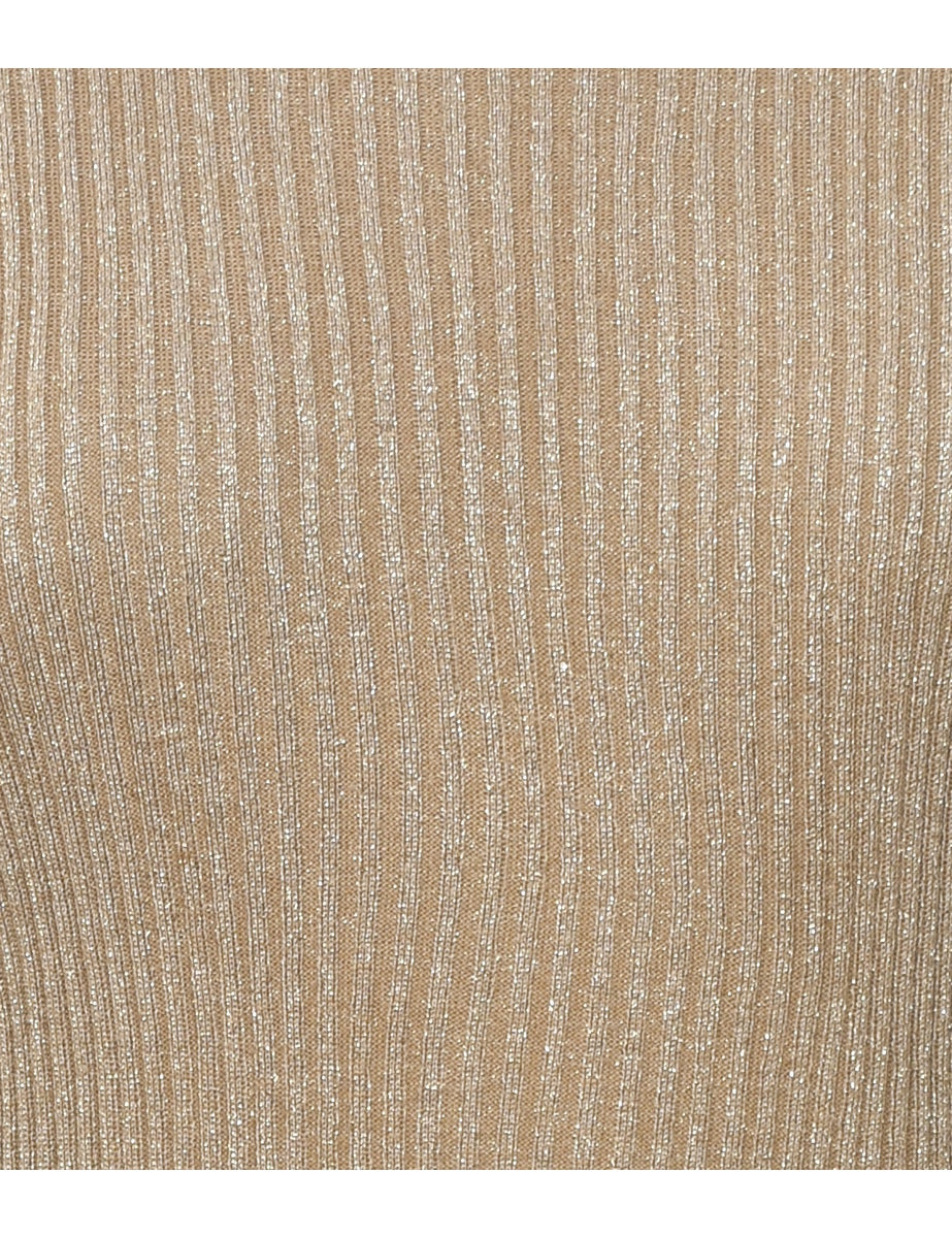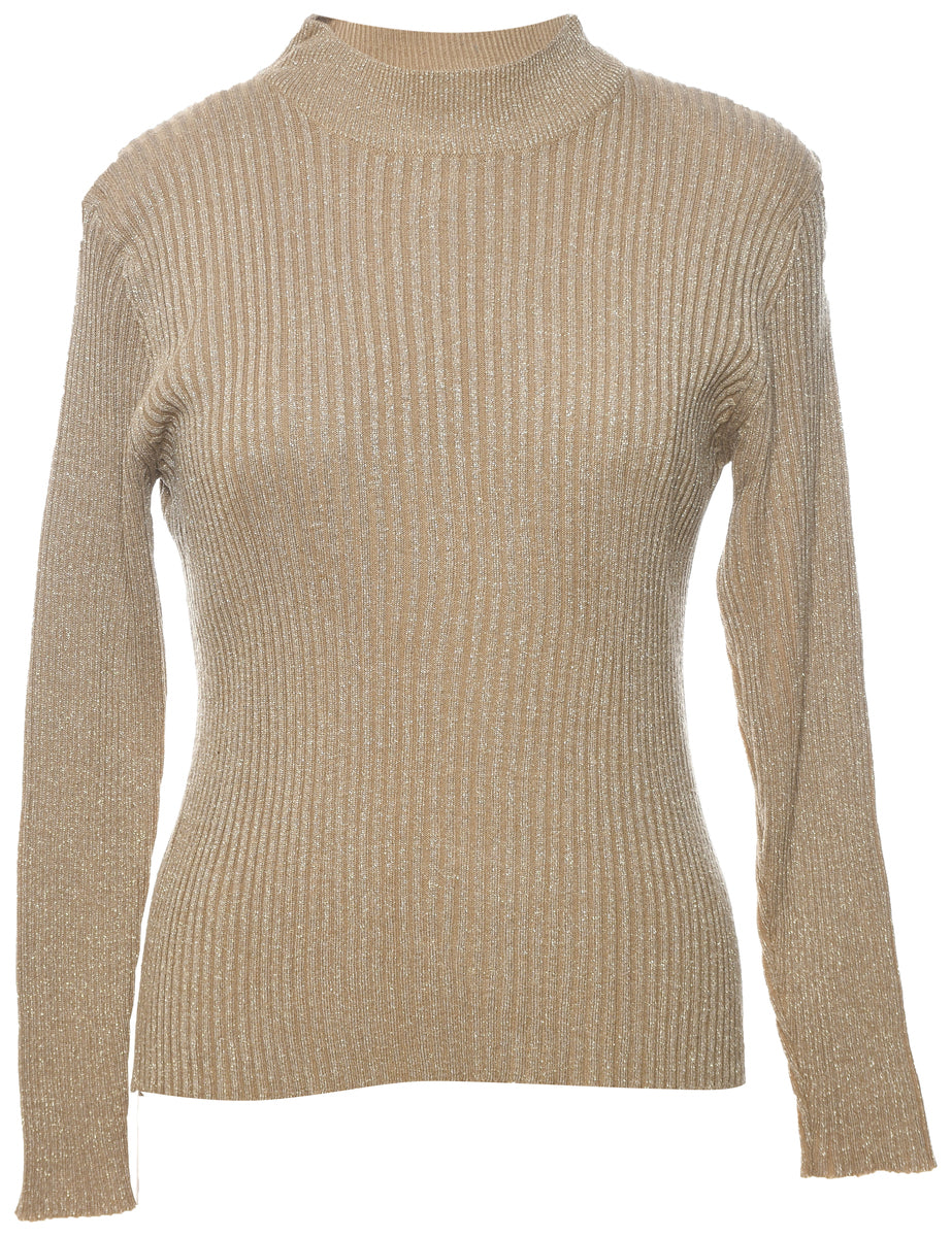 Lurex thread pattern jumper in pale yellow with a crew neck and removable shoulder pads.