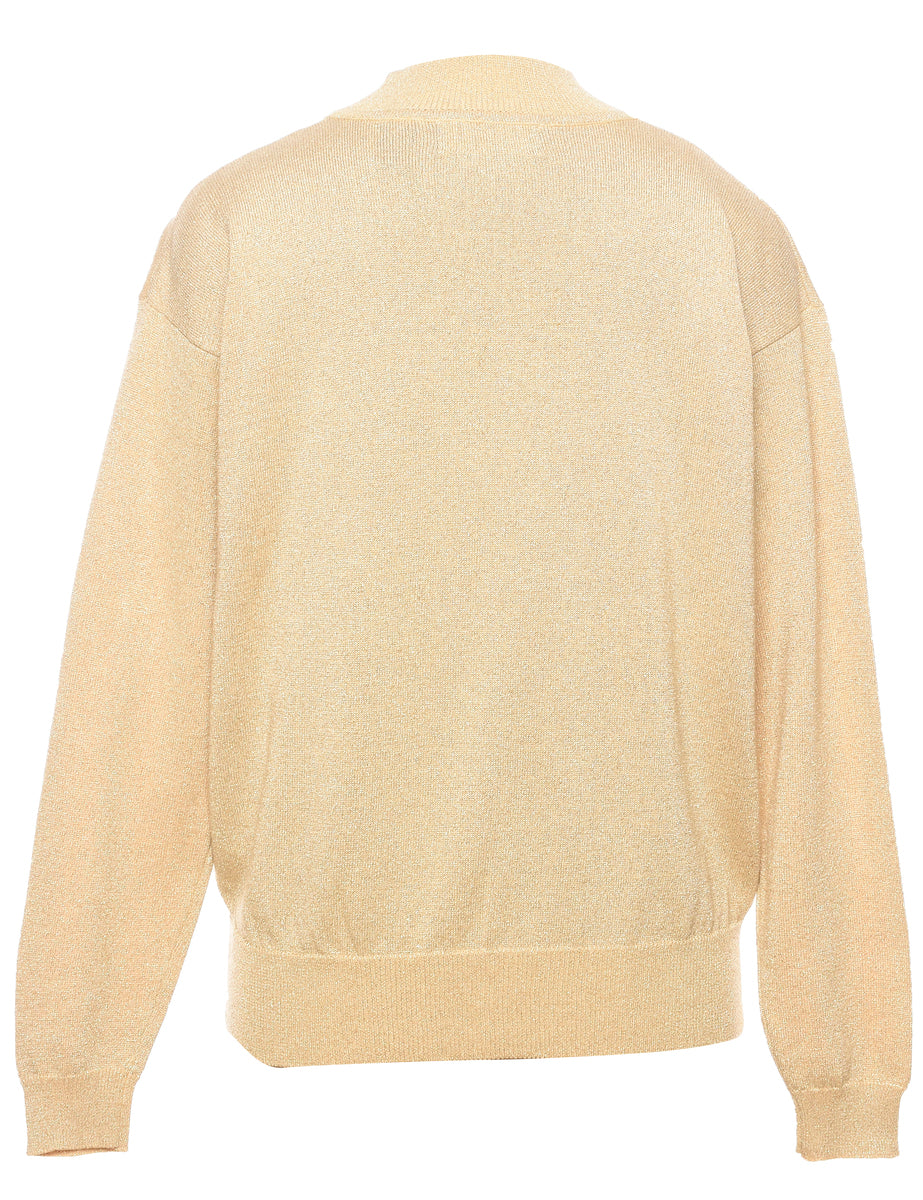 Lurex thread pattern jumper. Comes in pale yellow with a crew neck and a drop shoulder.