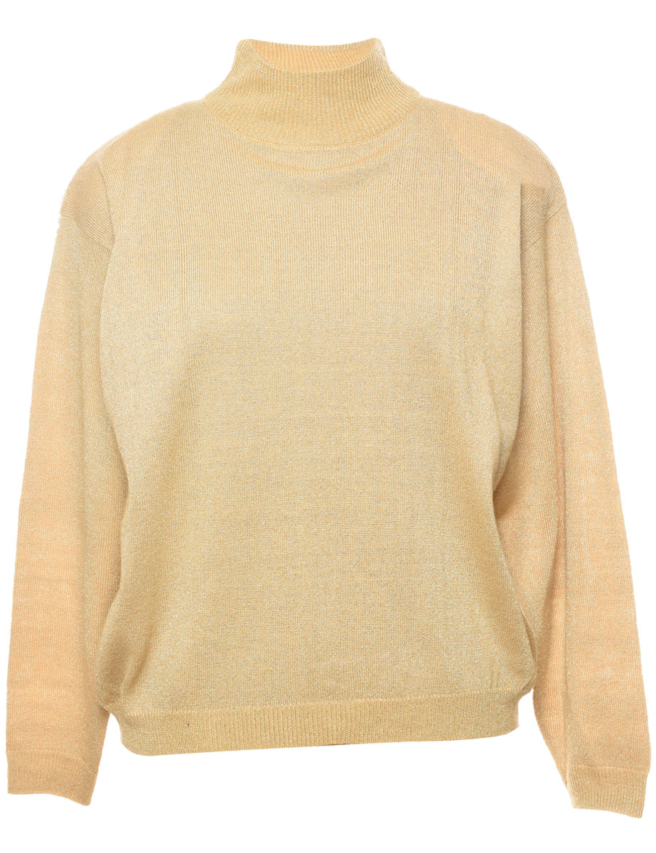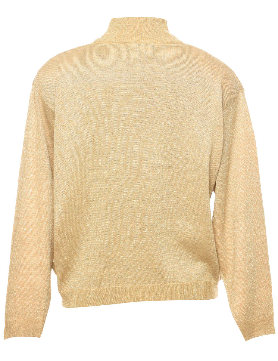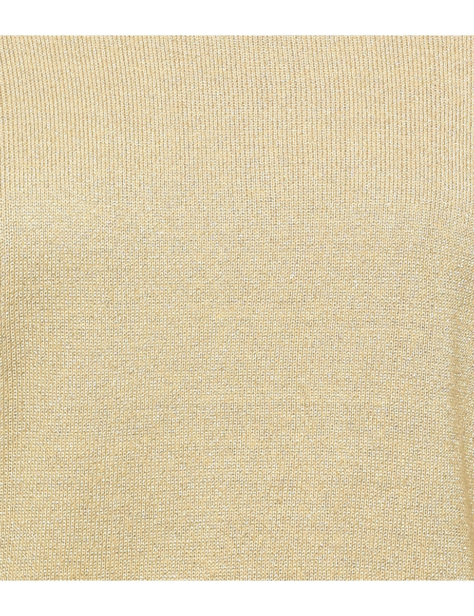 Lurex thread pattern pale yellow jumper with a crew neck and removable shoulder pads.