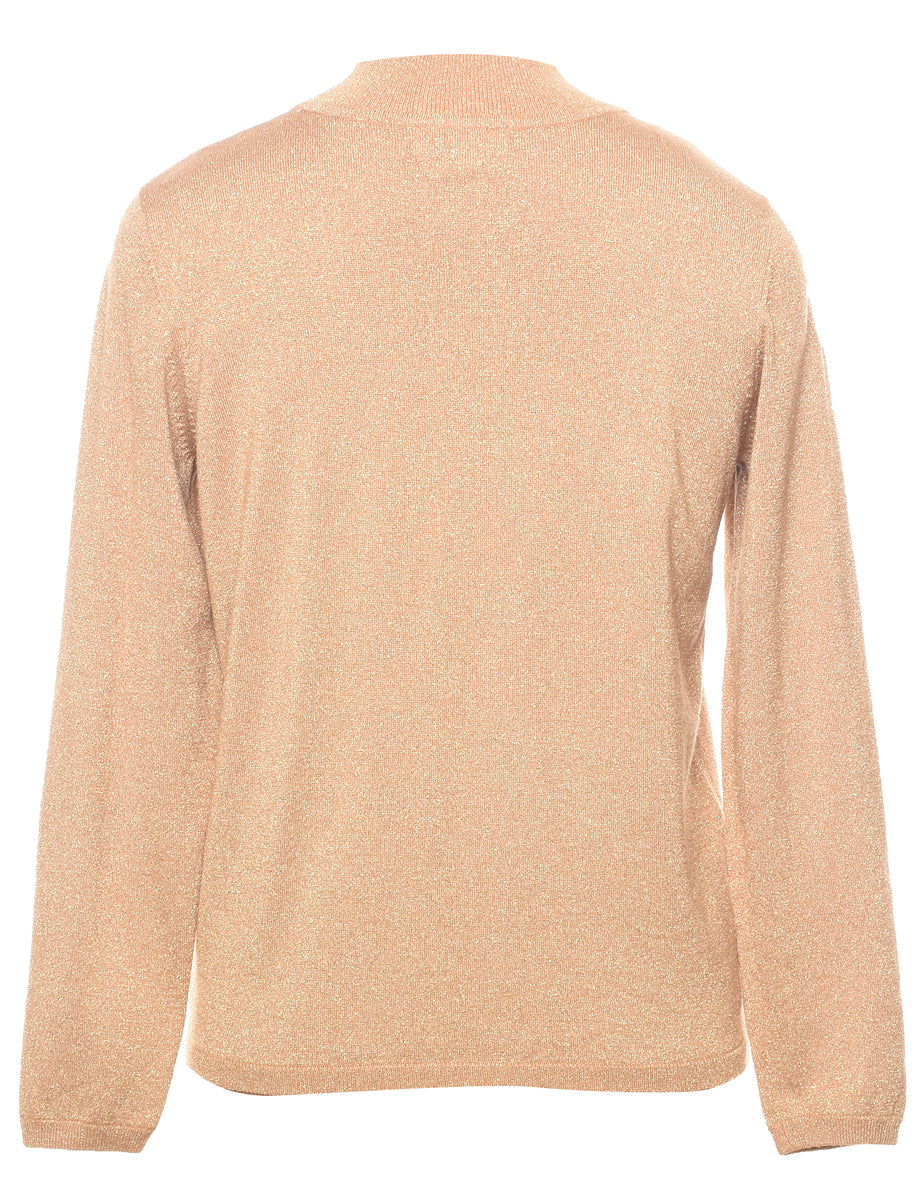 Lurex thread pattern jumper comes in gold with a crew neck.