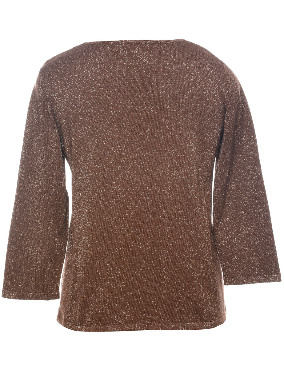 Lurex thread pattern jumper. Comes in copper with cut out detailing and sequins.