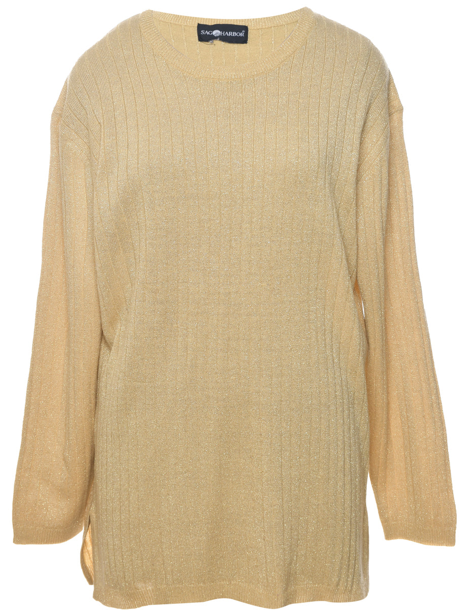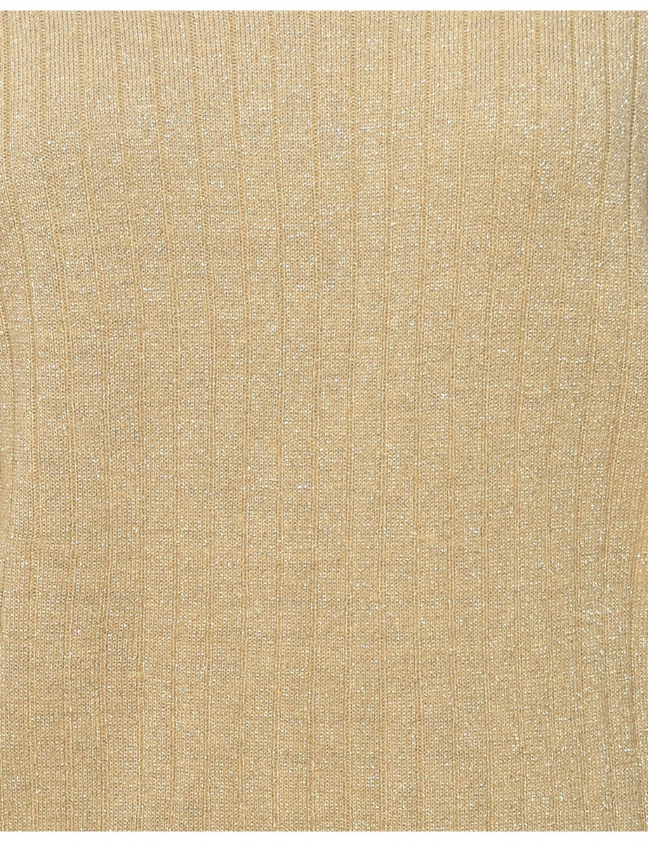Lurex thread pattern jumper in pale yellow with a round neck and a drop shoulder.