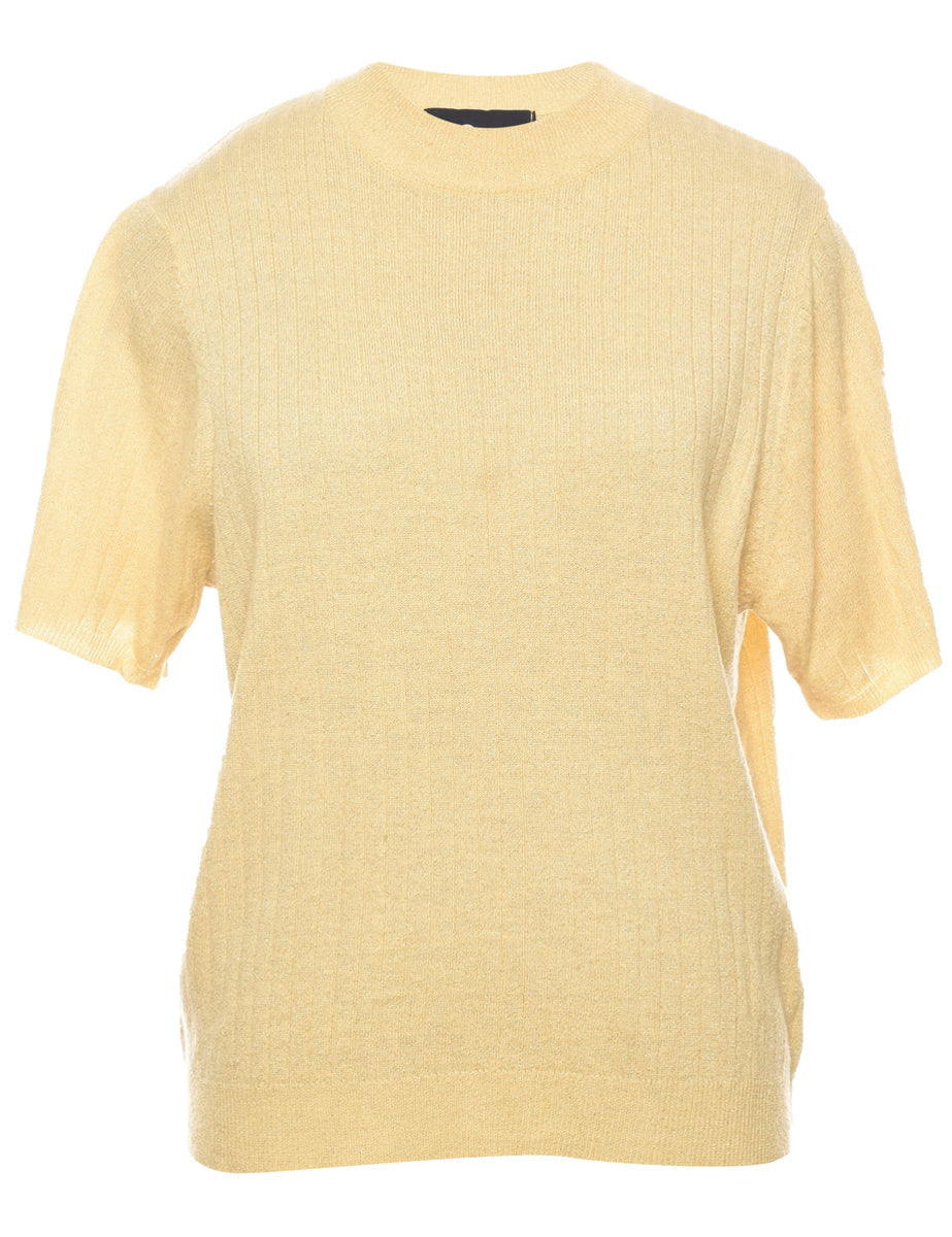 Lurex thread pattern jumper. Comes in pale yellow with a crew neck.