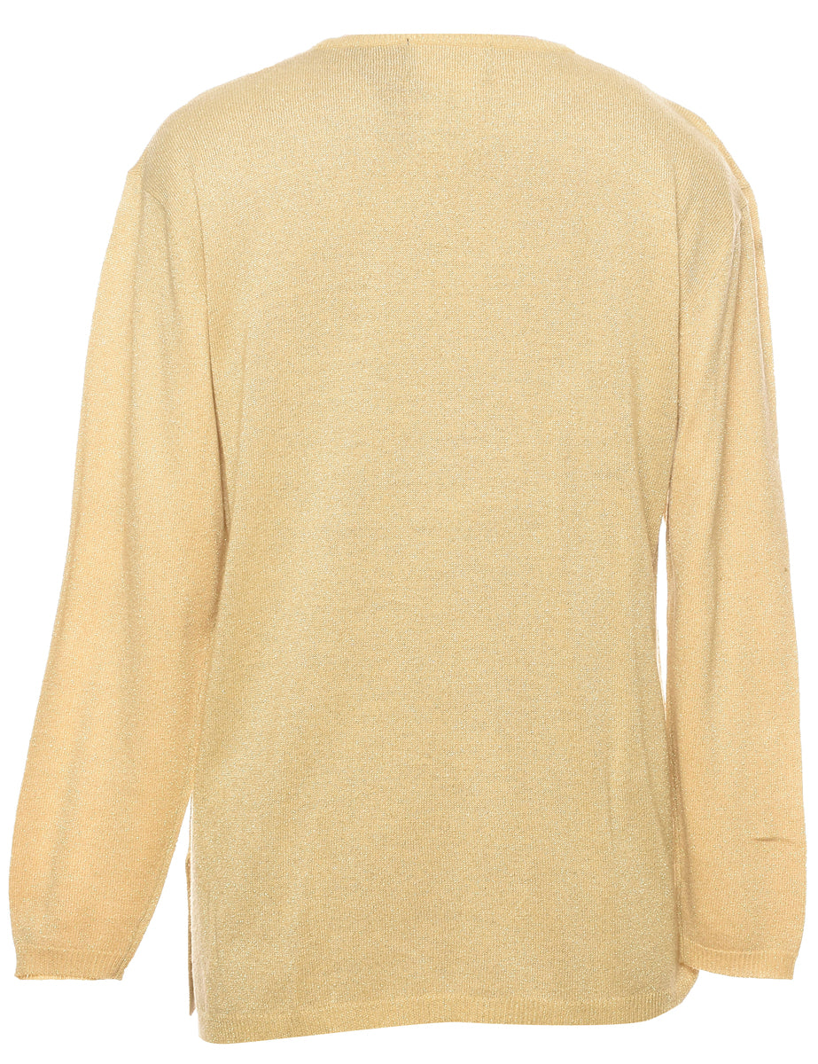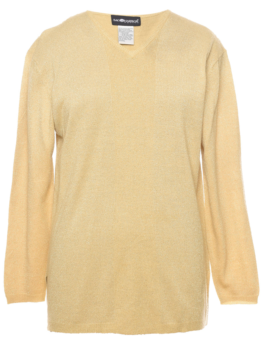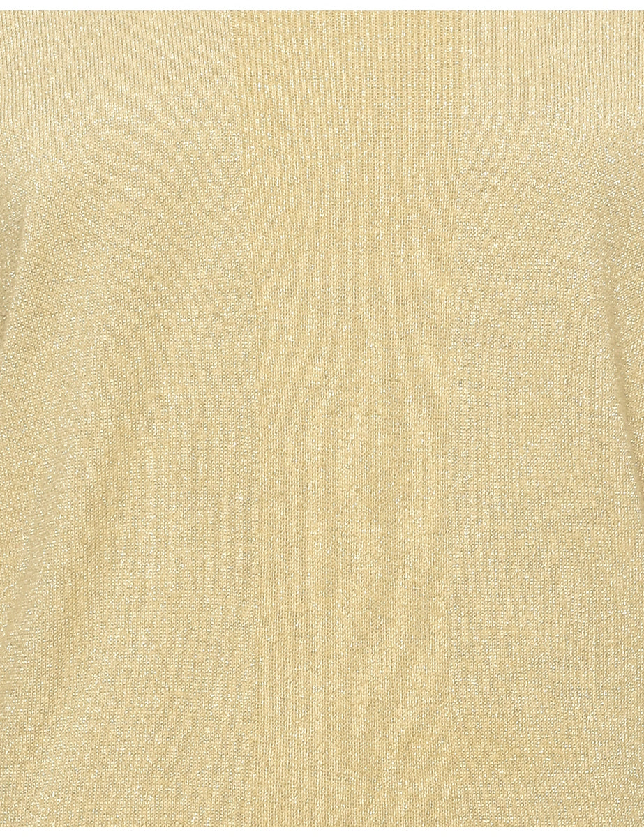 Lurex thread pattern jumper in gold with a v-neck and a drop shoulder.