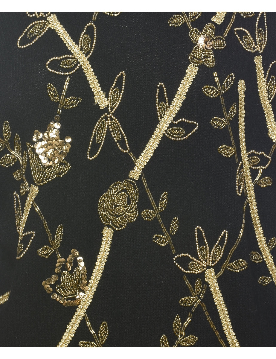 Sequined jumper with lurex thread pattern. Comes in black with beading and a drop shoulder.