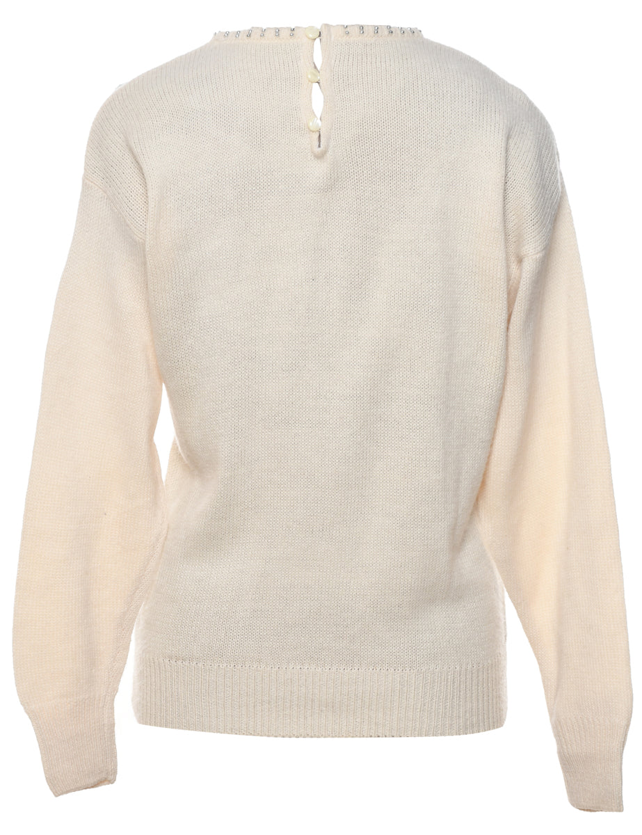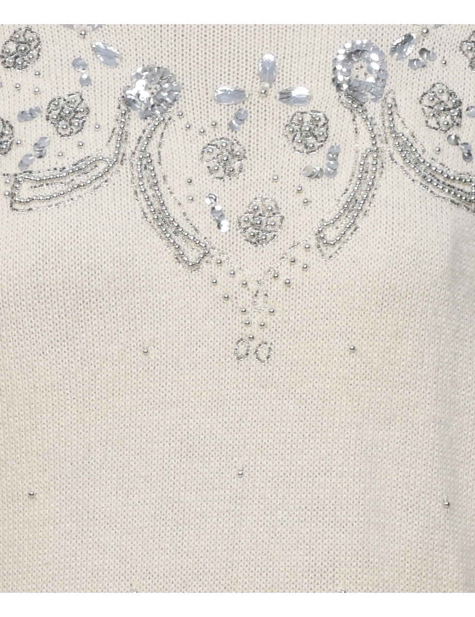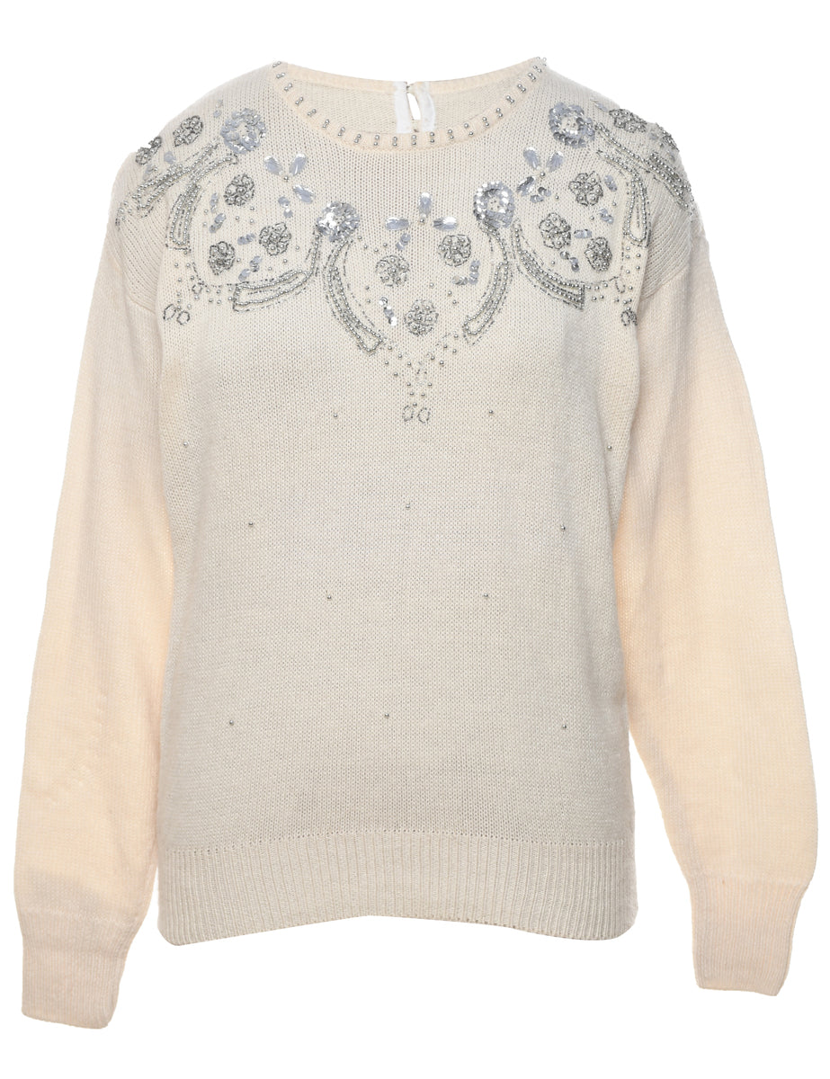 Vintage Sequined Off White Jumper - M