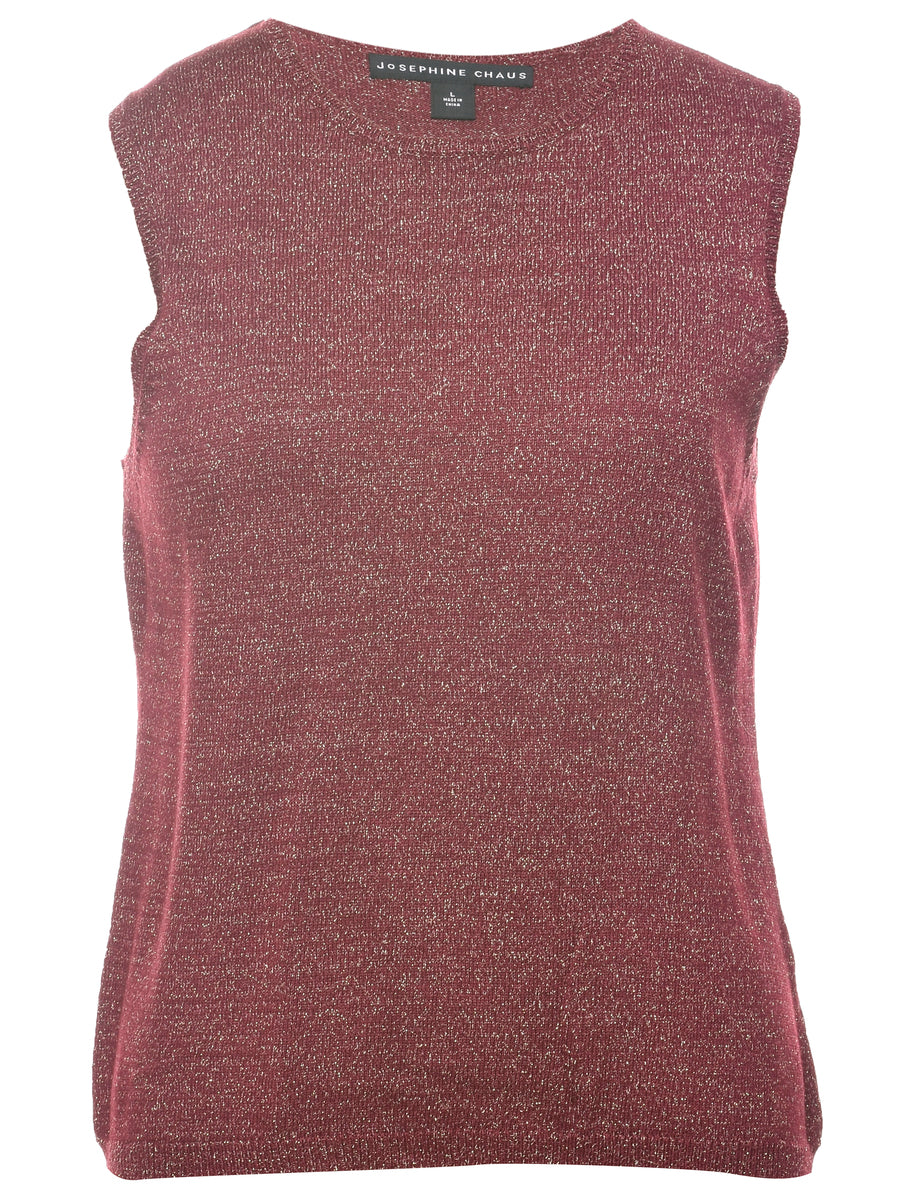 Lurex thread pattern vest comes in maroon with a round neck.