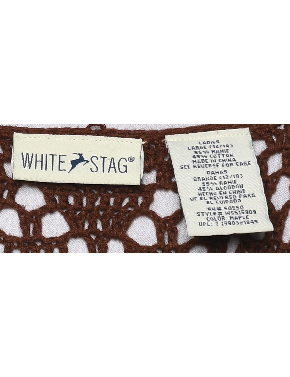 White Stag vest with crochet. Comes in dark brown with tie feature.