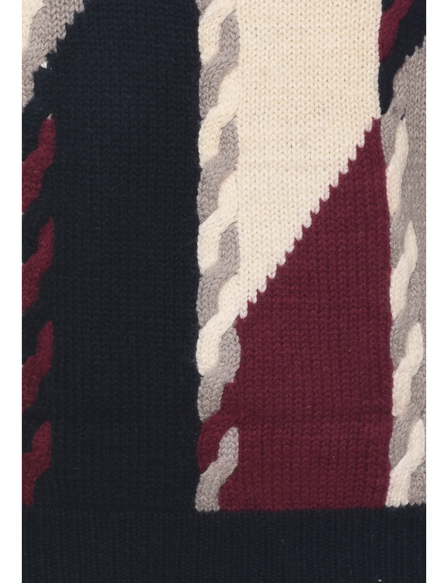 Colour block cable knit jumper in multi-colour with a crew neck and a drop shoulder.