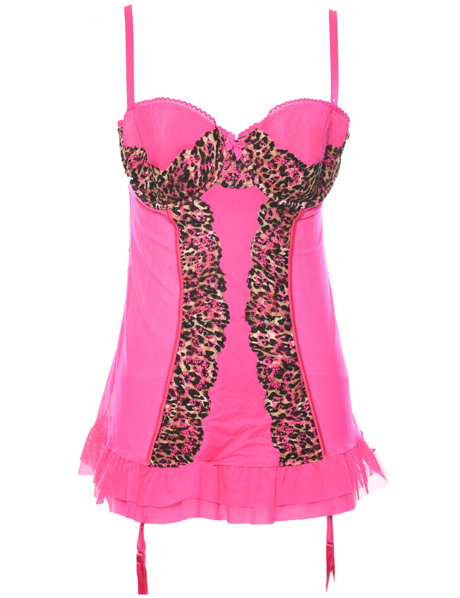 Exotic babydoll in hot pink. Small stain on front but otherwise in good condition.