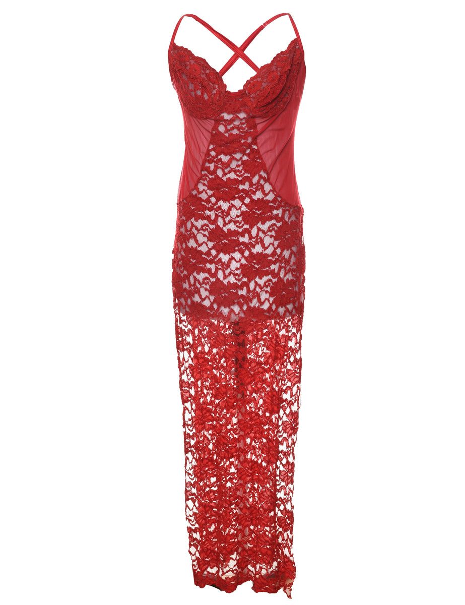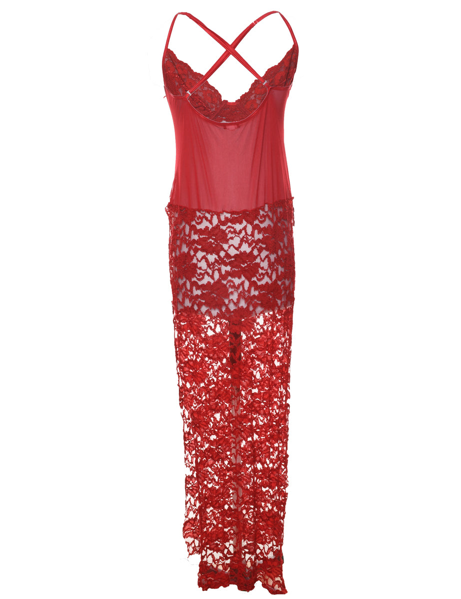 Lace nightdress. Comes in red with , adjustable straps and side slit.