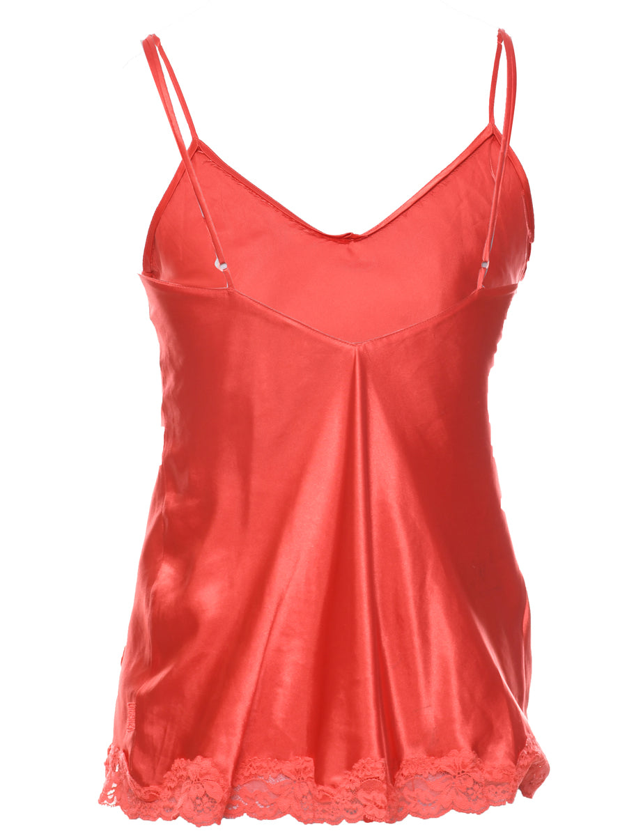 Slip comes in red with adjustable straps and lace trim.